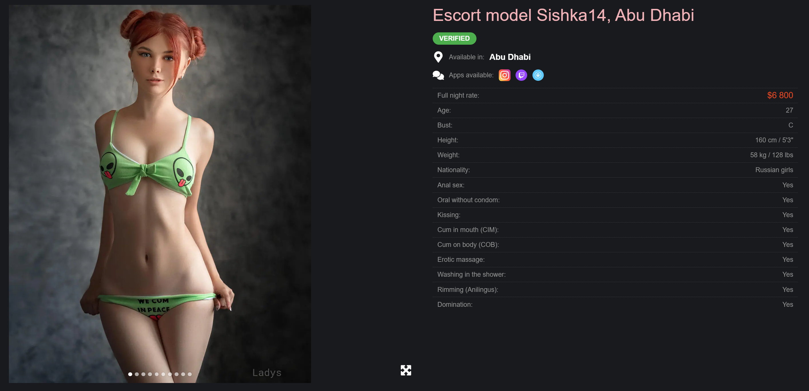 ### Дополнительные опции: - +1000–2000 руб. – дополнительные ракурсы или больше фото (по договорённости) - +500–1000 руб. – спецзапрос (например, определённый фон или реквизит) -+10000-100000 руб. - за откровенное и максимально развратное - Предоплата 50% для бронирования съёмки