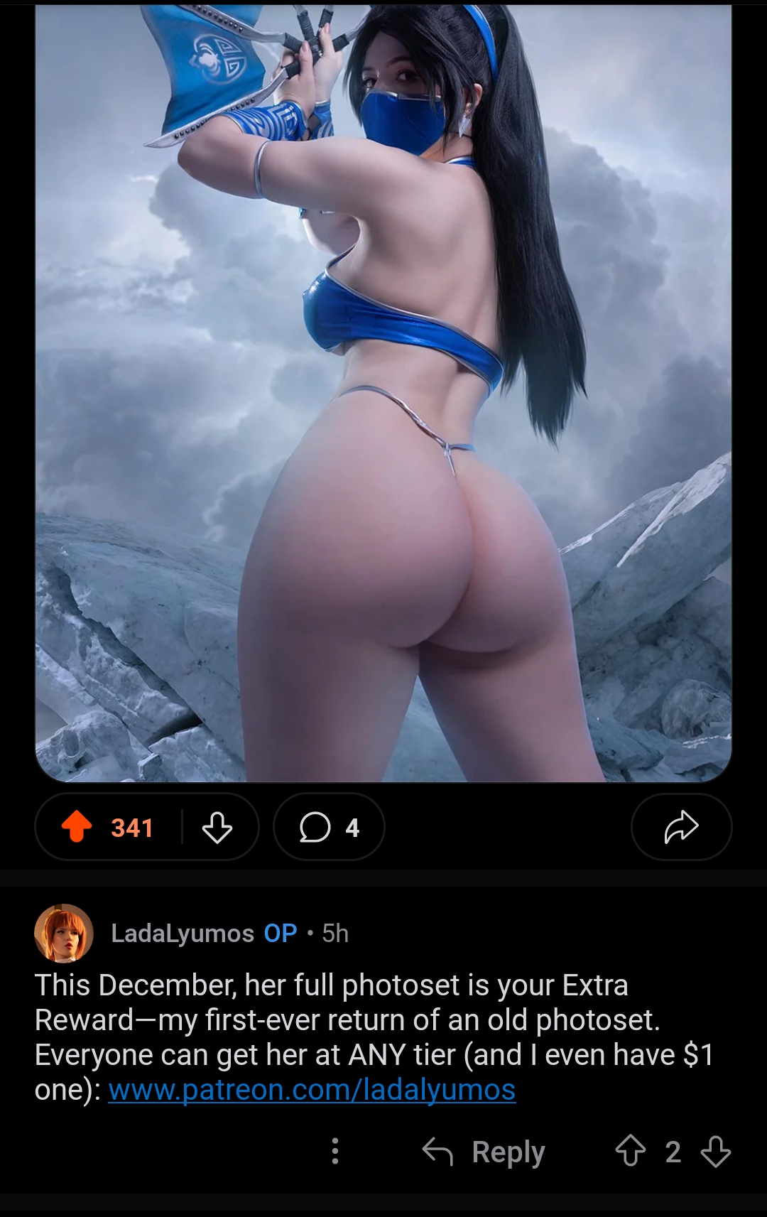 Что мне у Ладки нравится, так это то что она одна из немногих эрокосплеерш которая за бесплатно балует аудиторию 1-2 нюдсами. Остальные которые на слуху вроде какой-нибудь Меламори или Шадорихи нихуя без бабок не дадут. Максимум выложат фото в нижнем белье и то по охуеть каким большим праздникам.
