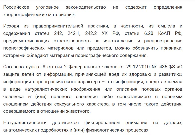 > за распространение прона По УК РФ, пока пися не тычется в писю, это не прон. Нюд фотки не считается порнухой, пока нет "отягчающих" типа, это делали на фоне храма, например, или тыкая в камеру свастоном. А вот по АП и от фотографов, и от сами косплейнеринь можно получить, если они в юрисдикции находятся. То есть, условному анону из Сомалилэнда хуй что сделаешь)