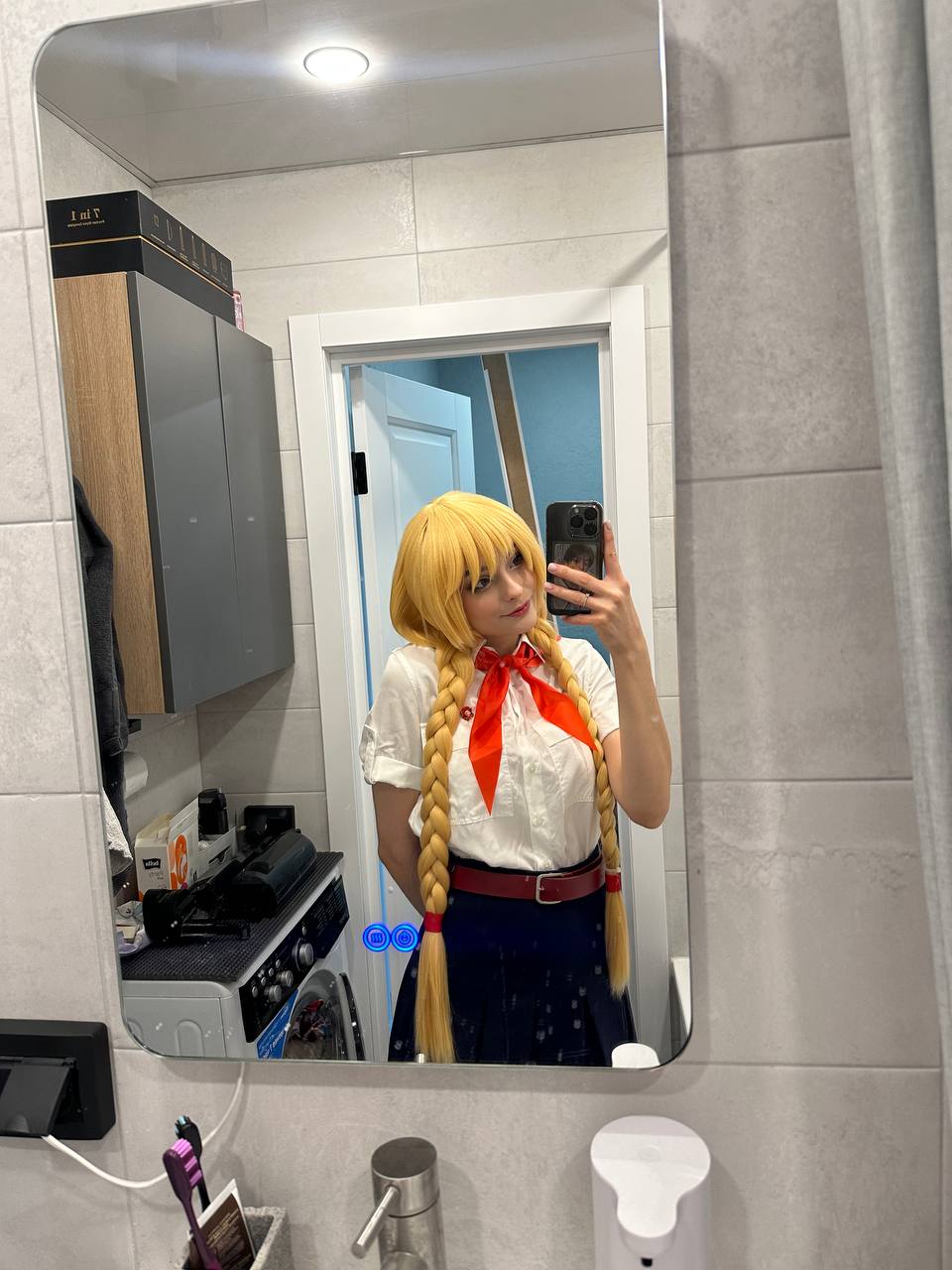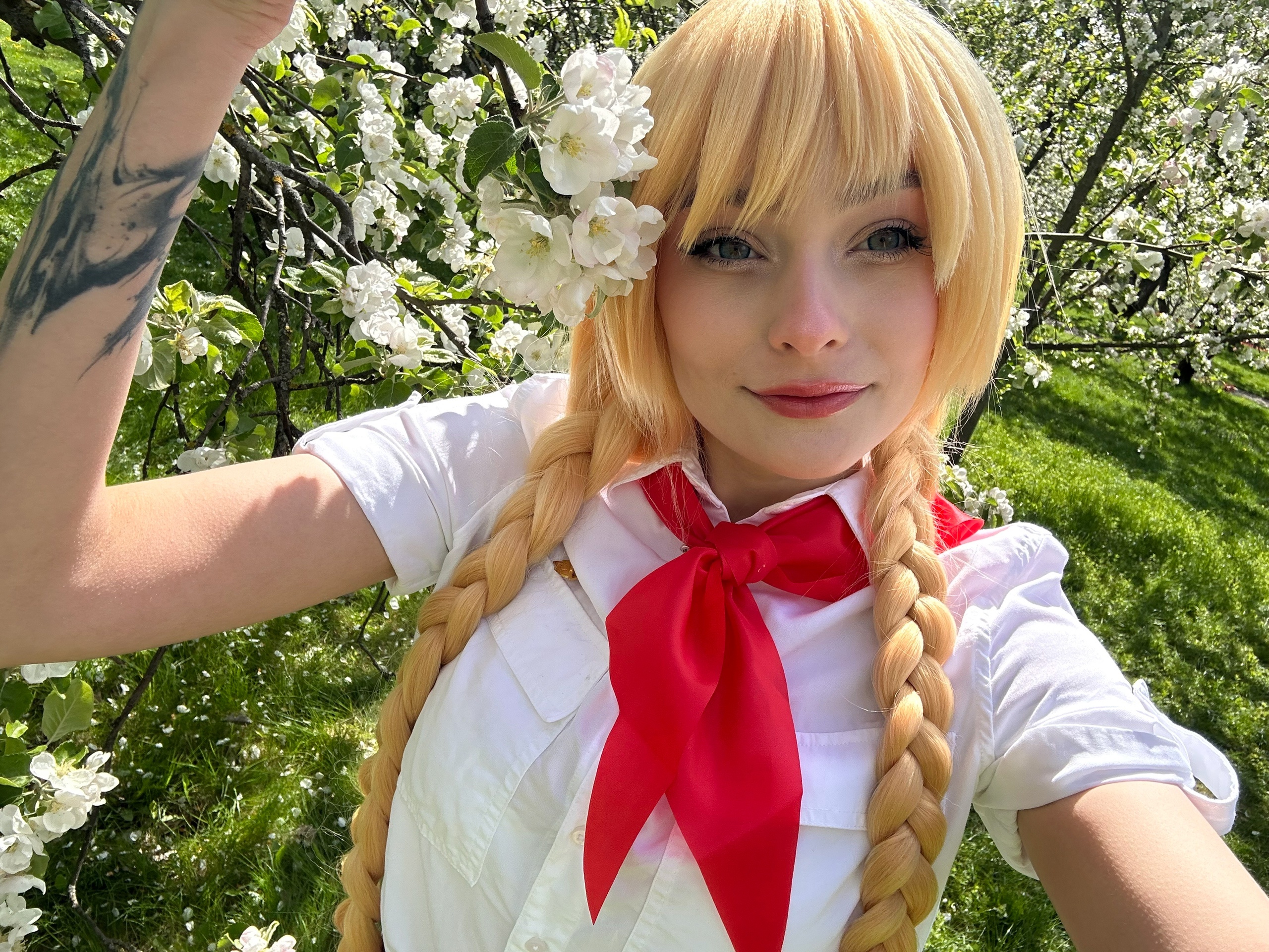 Как вы помните, в прошлом году я уже открывала сбор на поездку в Волгу и возила туда образы нескольких пионерок, в том числе и Слави, но со Славей не получилось ничего хорошего. Мне совершенно не понравился результат нашей работы и я не выкладывала практически ничего со Славей с той поездки кроме пары мобильных бэков. Было много проблем, как с париком, так и с погодой и фотографом🥹 Деньги на поездку и работу конечно же все равно были потрачены, и тот факт что я привезла оттуда вдвое меньше съемок чем планировала меня расстроил и я уже хотела совсем поставить точку на сьемках Бесконечного Лета.