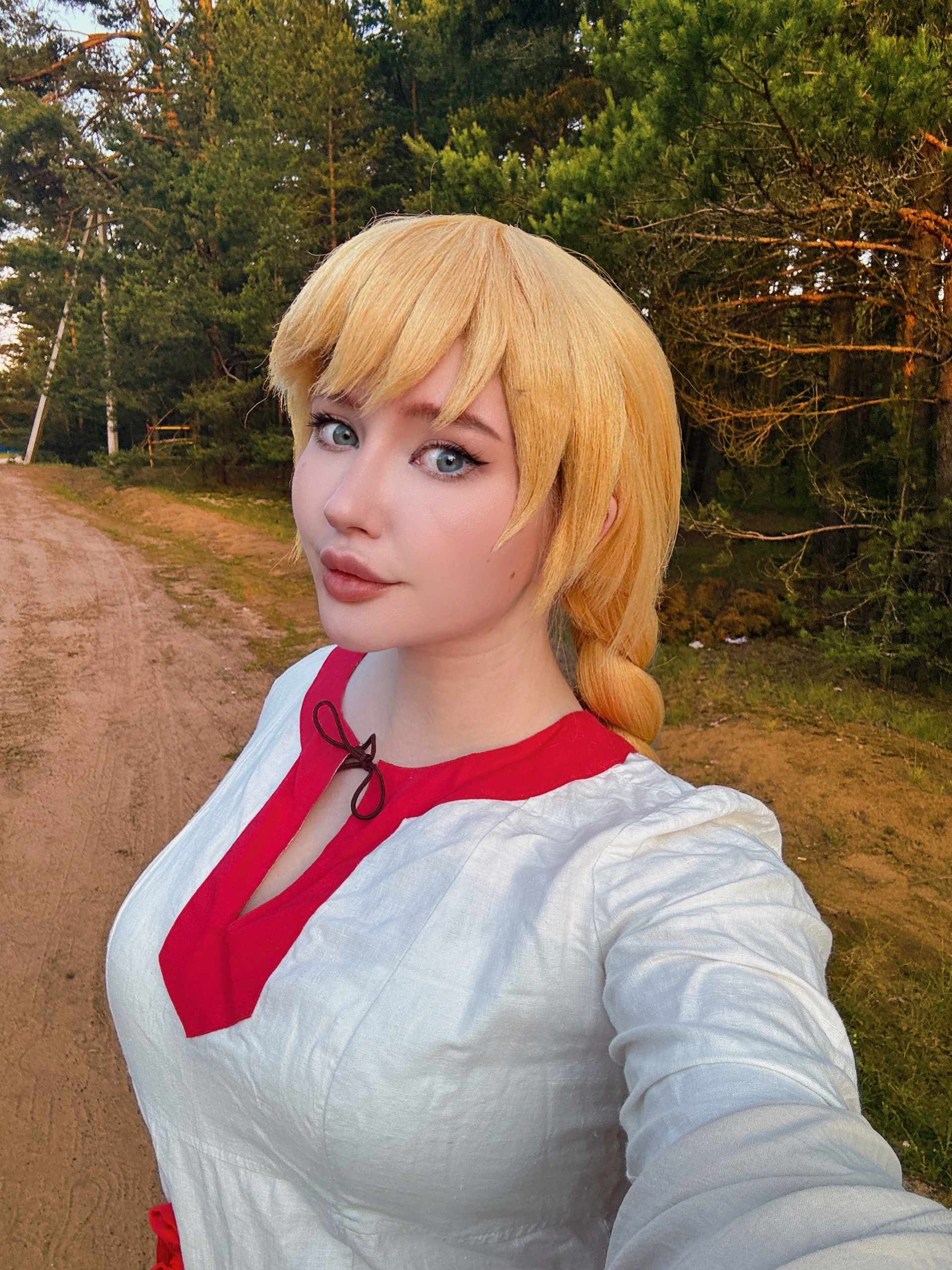 Но у меня все еще лежит красивая спортивка, платье травницы, каноничный купальник, и все это так и просит быть отснятым хорошо и красиво хотя бы за факт того, насколько качественный у этих образов пошив и как они хорошо смотрятся на мне. Поэтому я решила что этим летом я пересниму Славю, и начну я с образа травницы уже на следующей неделе.