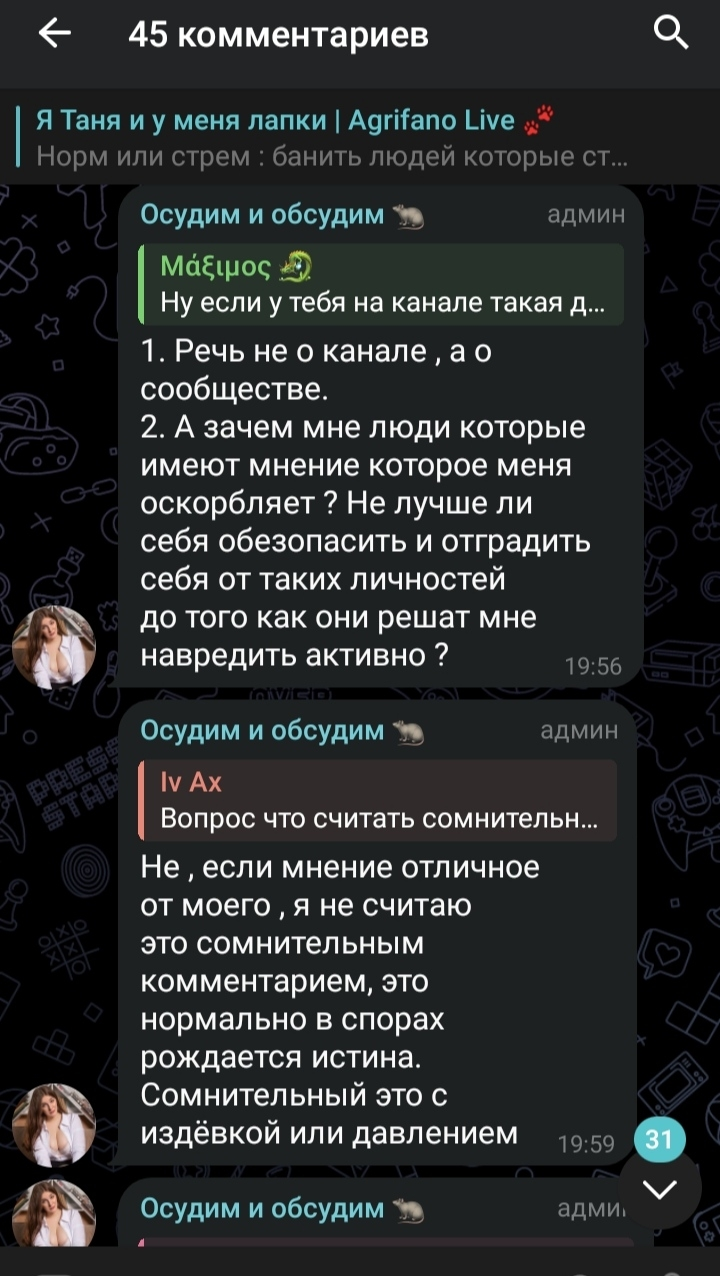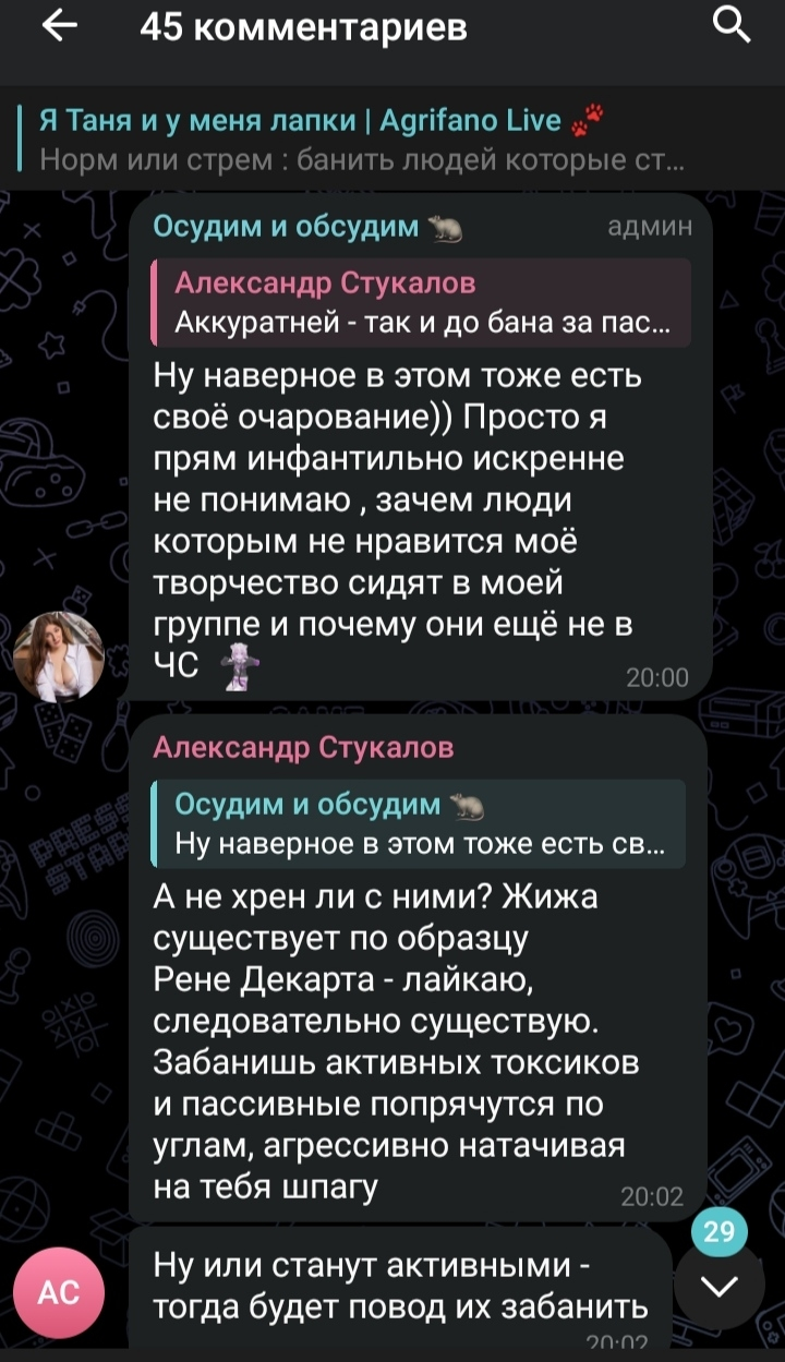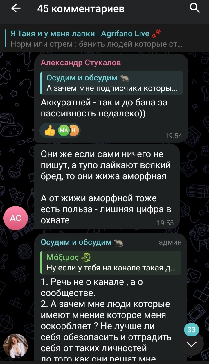 У Буренки все больше поводов добавлять людей в ЧС. За лайк негативного комментария в её сторону - ЧС