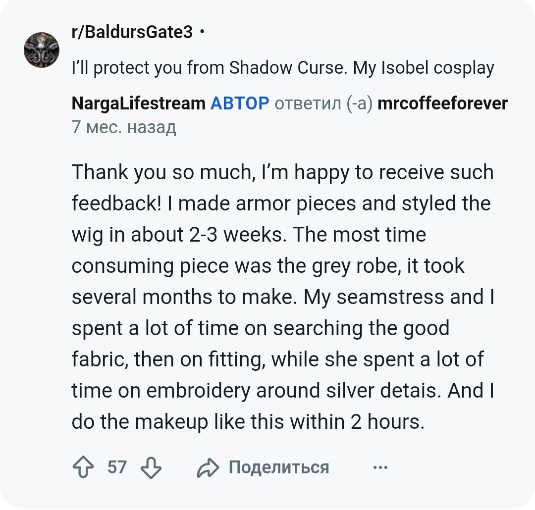 Симп же в соседнем треде отметился, обосрав группу косплееров. Там он выкатил формулу успешного косплеера. по которой та же Нарга давно говном стала. Ну или такие же блаженные есть, для кого успешный косплеер = грамоты + костюмы из коврика + репосты. Хотя все, кто в теме, шарят, что платье сложное шить дороже, чем сделать доспех. И сложно, это не когда у него вид кричит, что оно сложное, это может быть та же условная Марсиль из подземелья, которую начни шить и охеревай от цен на ткань, дешевле будет коврик купить (еву) и габардин для подстилки под доспех. Потом такие будут сравнивать косплееров отшитых с пиздюшками в костюмах блестящих, купленных на али, не видя разницы. Ну это так, чуток воды, но по теме.