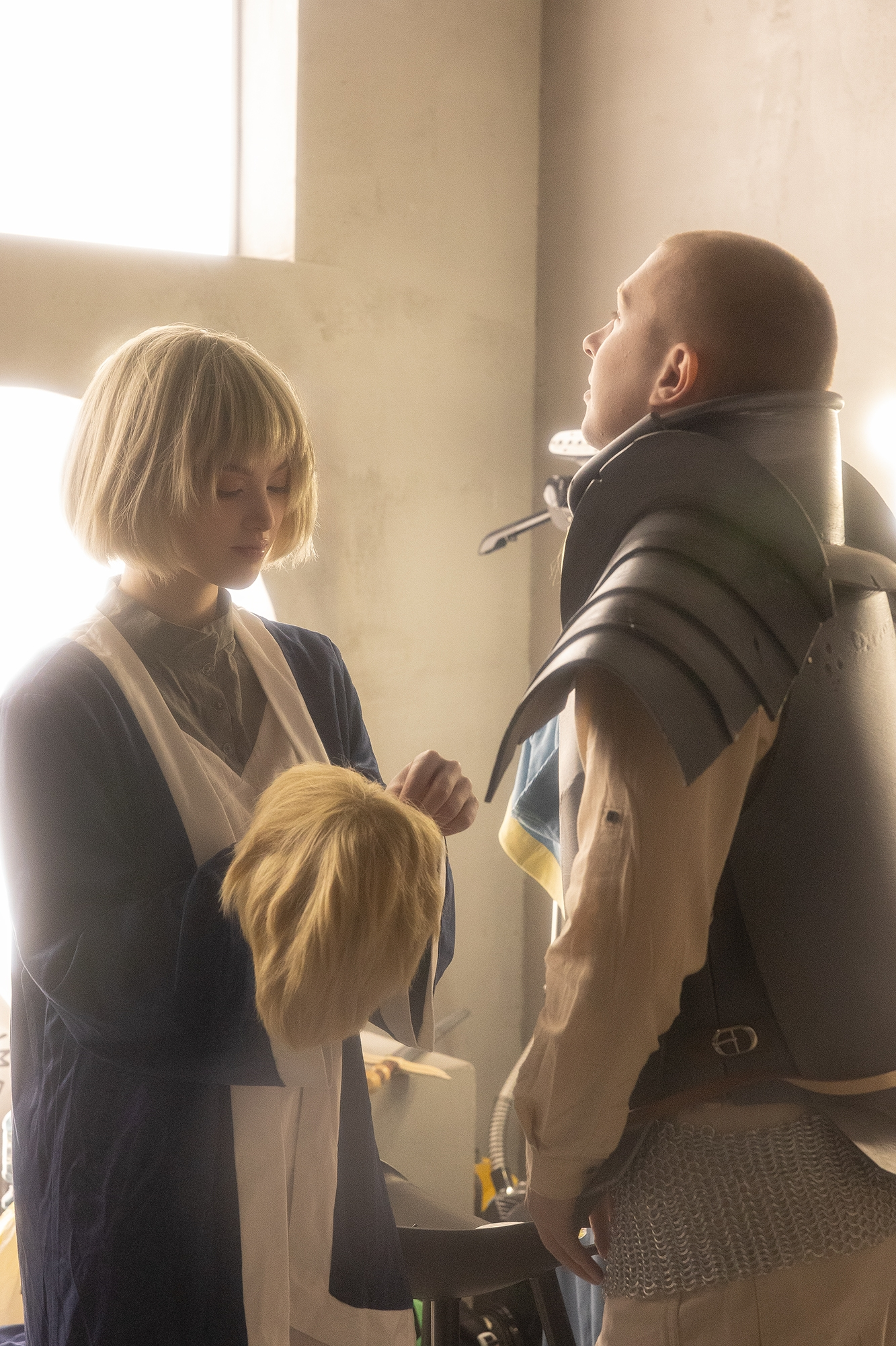 Парик весь в говно растрепан, потому что нужно придать натуральность воительнице, а не потому что лень было расчесать 1-2 минуты (в студии ветра нет, чтобы он после растрепался за два порыва).