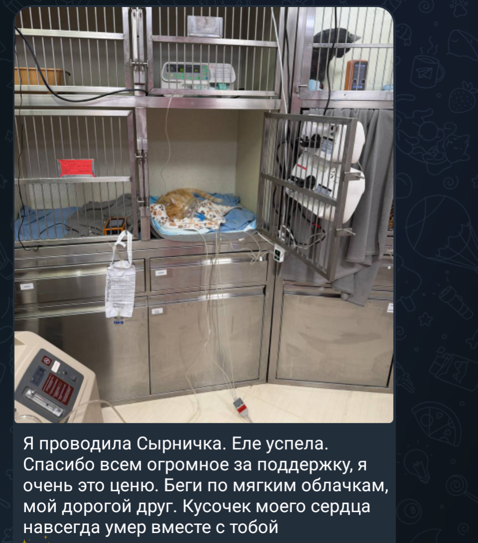 Насчет лечения животины. На бусти или еще где написано "острая почечная недостаточность" - в таких случаях животное по факту не может пить вообще, тк почки или не работают совсем или еле еле тянут. Не являюсь врачом, могу где-то быть неправ, но по сути в таких случаях животному фактически не дают подохнуть от обезвоживания капельницы и прочие медикаменты, которые нужны ему 24/7 , при этом питомец круглосуточно находится в ветке под присмотром врачей. Хз где она живет, предположу что в Москве + ценники в ветках бывают разные, а когда у тебя питомец одной ногой в могиле ты скорее всего повезешь его в хорошую ветеринарку, с соответствующим ценником. Короче, предположу, что реальный ценник за все услуги измеряется в сотнях тысяч рублей. С острой почечной недостаточностью кошки долго не живут в принципе - если повезло откачать, то с большой долей вероятности в ближайшее время или помрет или понадобится очередное дорогостоящее лечение с капельницами и тп. Поступок со сбором средств тоже не совсем понимаю, но она явно это сделала, не ради каких-то 50-100к имхо. Кота жалко, но в таких случаях - это вопрос времени - или сразу усыплять или побороться, чтобы еще хоть немного пожил. Ценник в ветках, особенно в больших городах очень даже конский в наше время, если не верите - посмотрите сколько стоит банальное УЗИ.