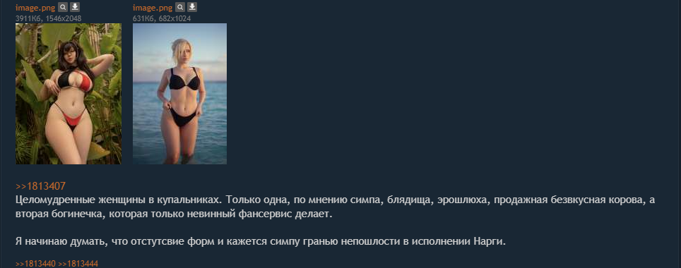 >Любая, кто фотографируется без паранджи, От паранджи до пикрила, по твоему мнению, градации никакой. Этот диалог уже невозможно воспринимать всерьёз.