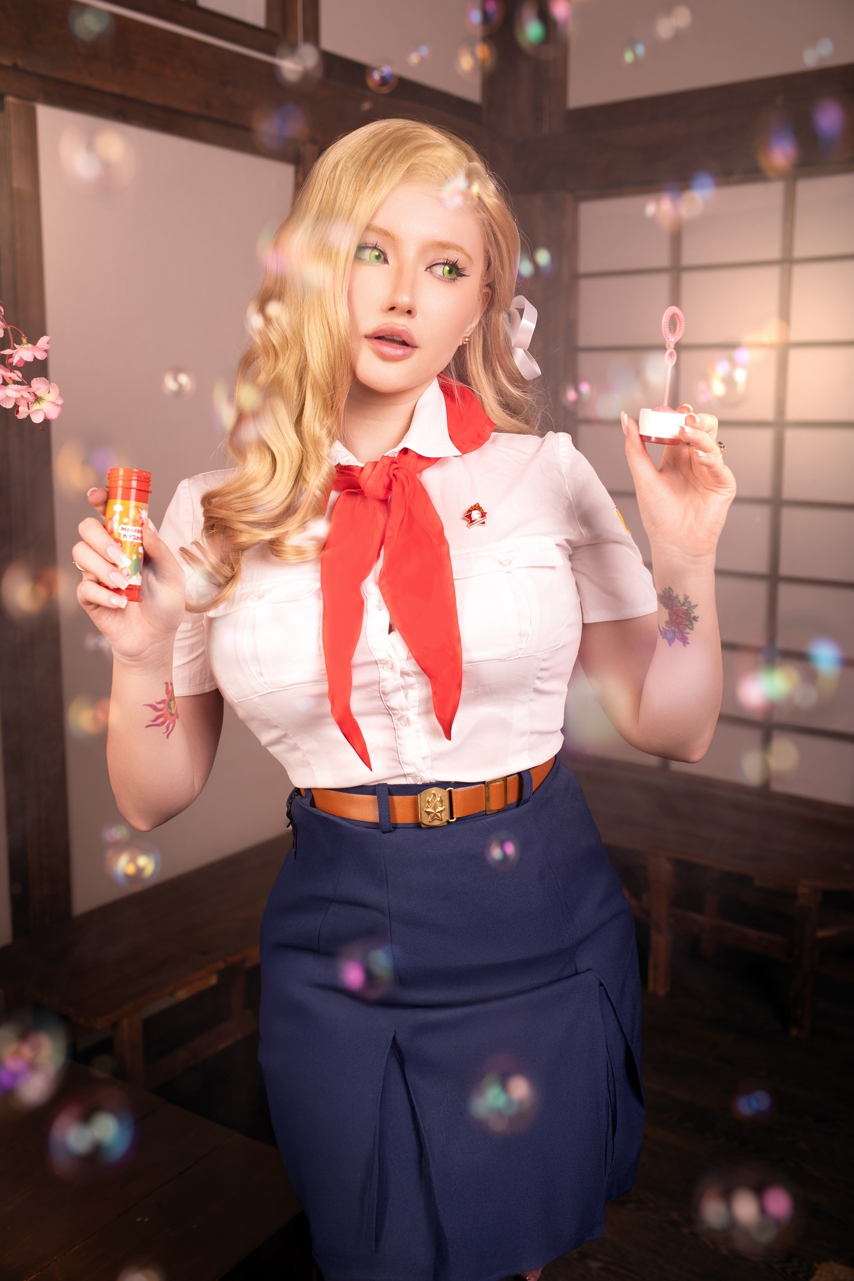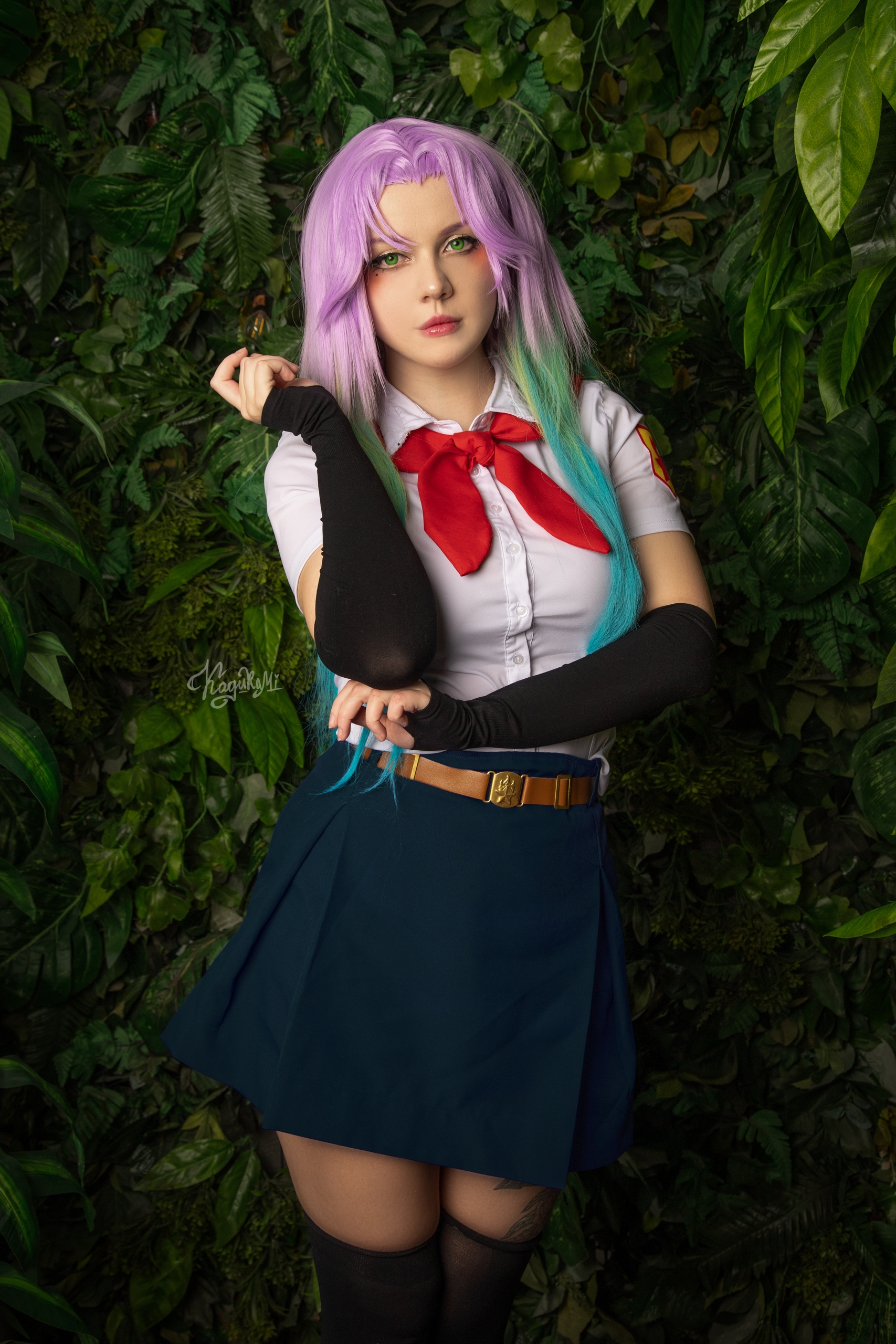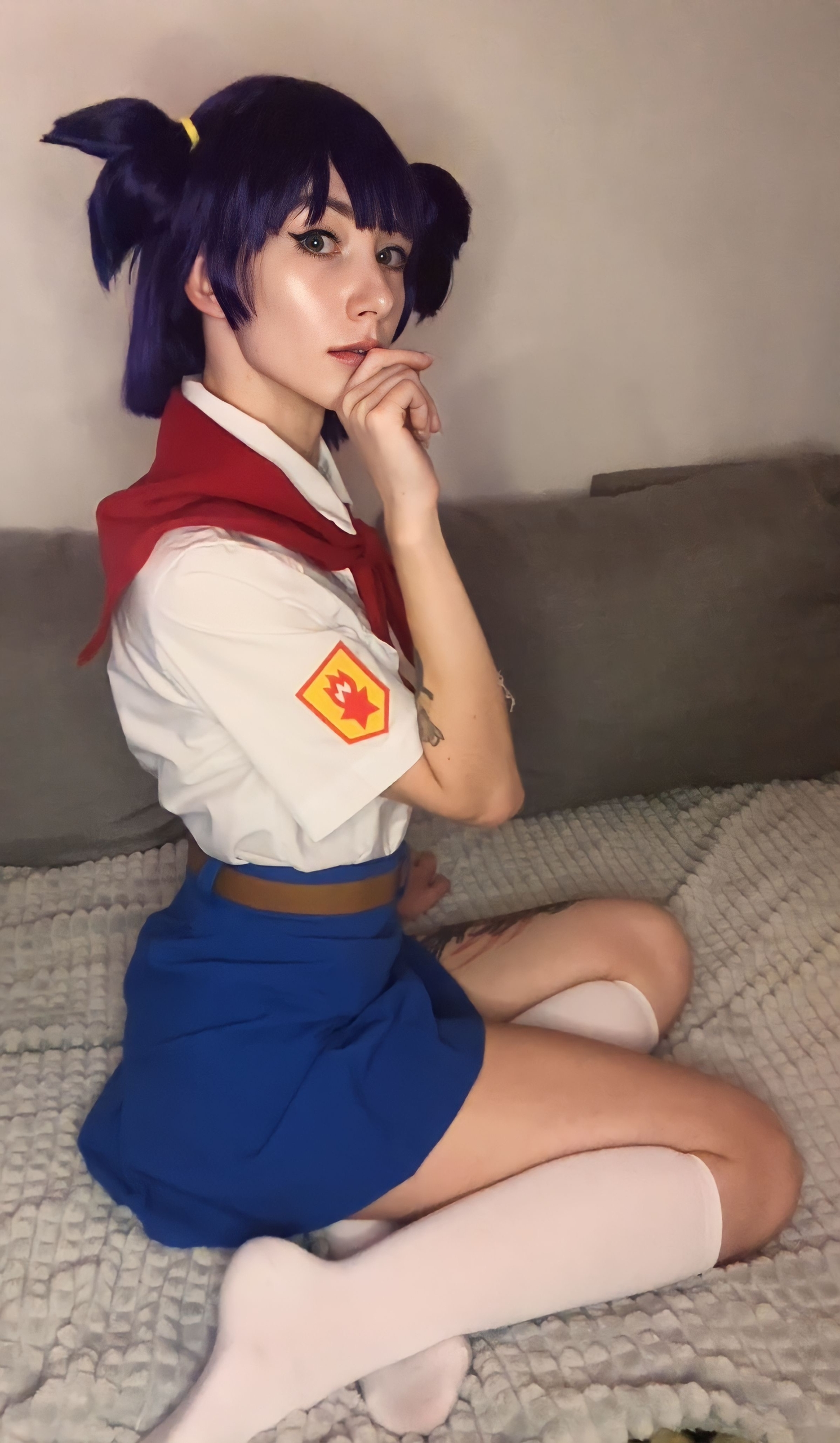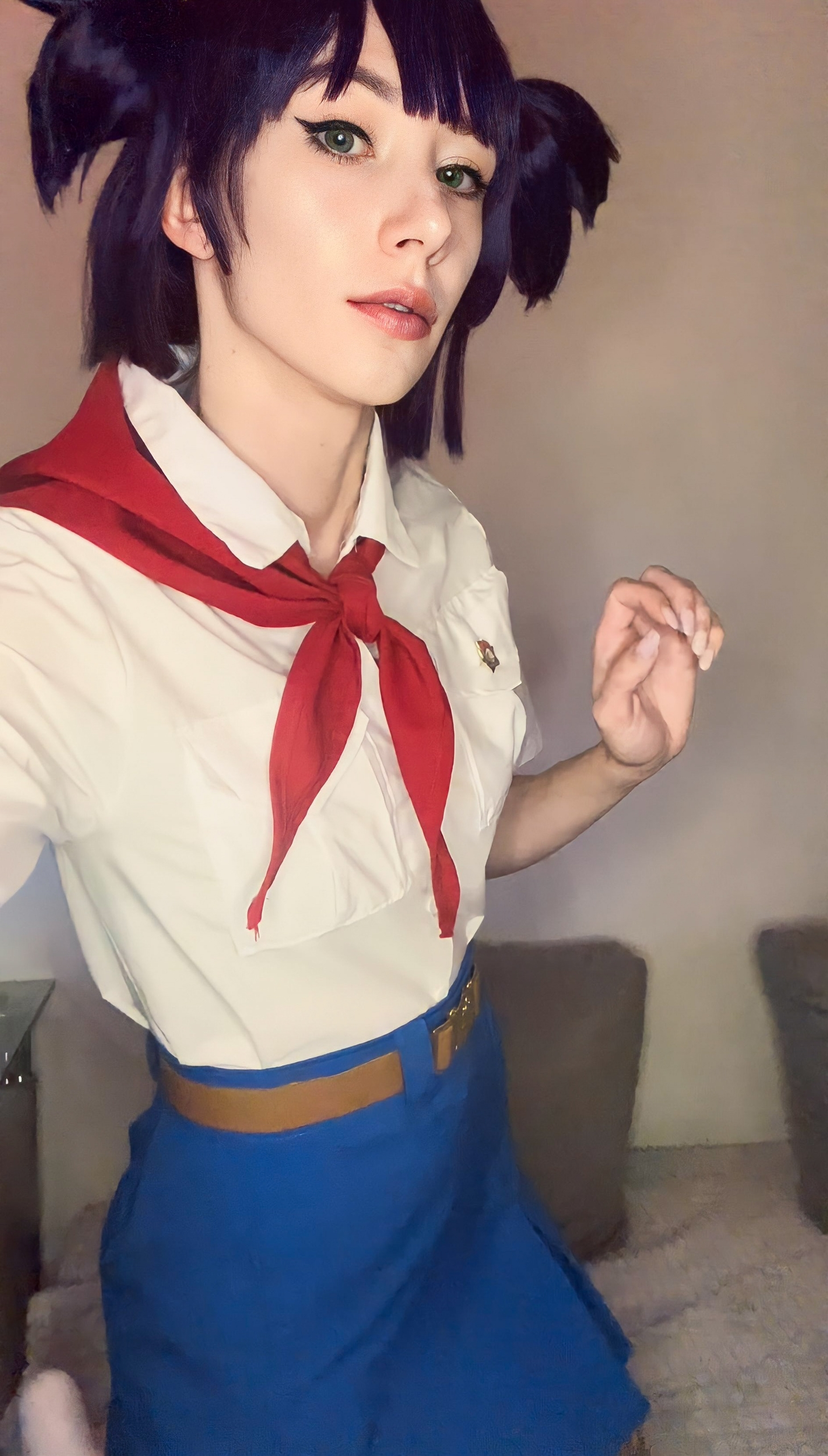 >Блин эти хвостики так приколюшно выглядят, и очень даже напоминают Ленины, хотя они абсолютно другой формы. Помню когда делала на неё каноничный косплей ОЧЕНЬ сильно парилась из-за формы хвостиков, мне прям хотелось идеально - супер дупер канон. 🥹 Я сначала купила фиолетовый короткий парик и попробовала сделать по тутору с ютуба хвосты самой, ноо не получилось. Потом заказала укладку у вигмейкера и мне форма не очень понравилась. Поэтому далее я нашла на барахолке парик от того самого легендарного косплея Лены из косбенда "Дети Рабочих" (кто шарит тот шарит). Он прям ну идеаааальный... Я так была счастлива, что смогла его купить)))) Кстати, интересный факт - это является единственным париком уложенным не мной). Какие парички на Лену вам нравятся большие - полностью повторяющие форму хвостиков или же более натуральные? Или для вас это не имеет значения?) Для меня ой как имеет, парики это любовь