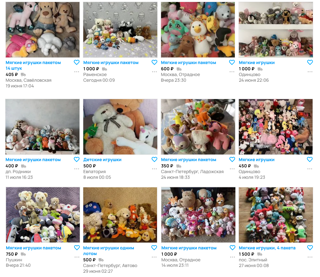 В детстве у меня мягких игрушек не было, как и Авито, где их теперь продают целыми мешками за копейки с доставкой по всей стране. Так что, кажется, это увлечение у меня надолго.