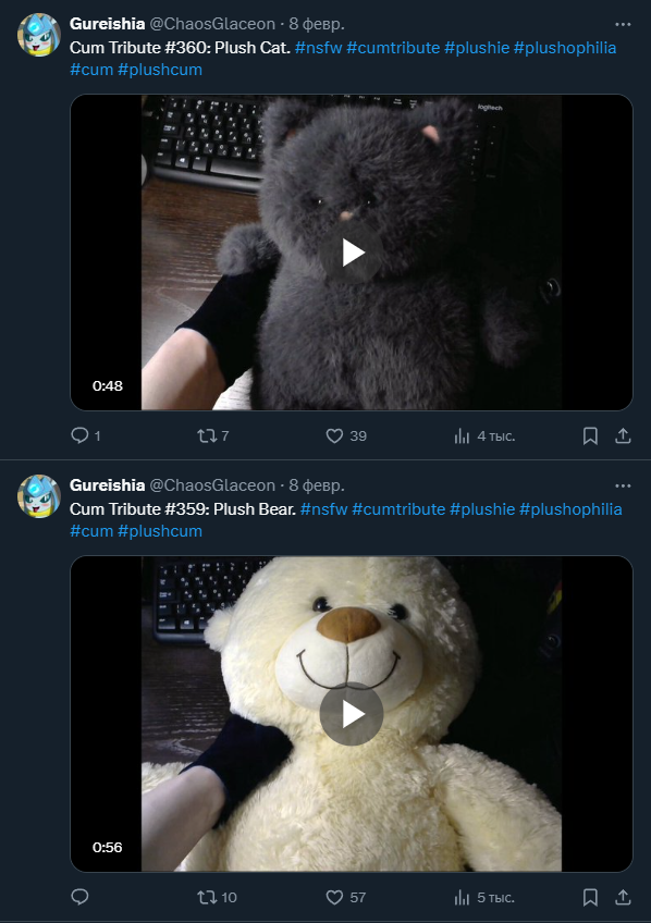 Там же по тэгу #plushophilia можно найти много видосов и фоточек от других любителей плюх. `w'