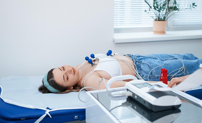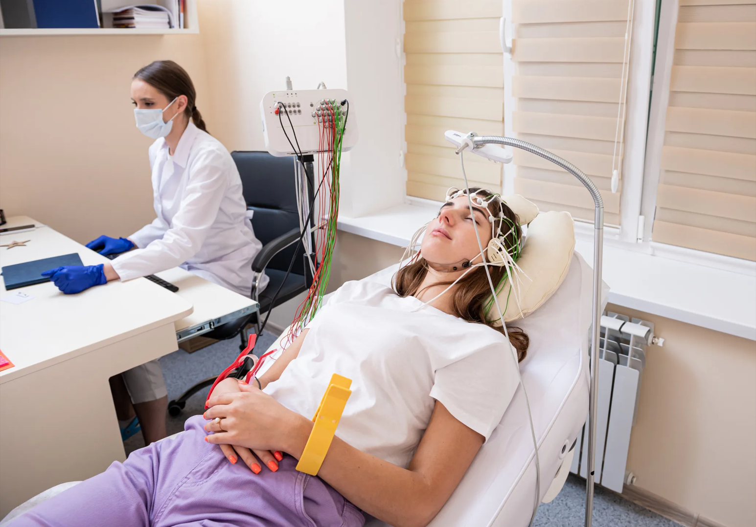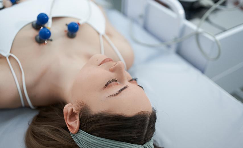 Было такое, делали ЭЭГ и не раз, сама процедура пиздец противная, а вот подключение всегда доставляло, даже если и медсестра обычная жируха поликлиническая (но разок таки было когда красивая). И аппараты были разные, и подключения каждый раз по-разному, что тоже доставляло. Только не с голым торсом, там же ЭКГ заодно не снимают, это вообще даже кабинеты обычно разные (кардиология и неврология). Максимум, иногда надевали еще прищепки на руки (а один раз - даже на ноги), но до пояса раздеваться не требовали. Пара реалистичных пиков из сети в помощь, раз уж тему затронули.