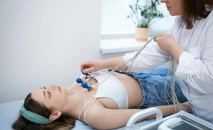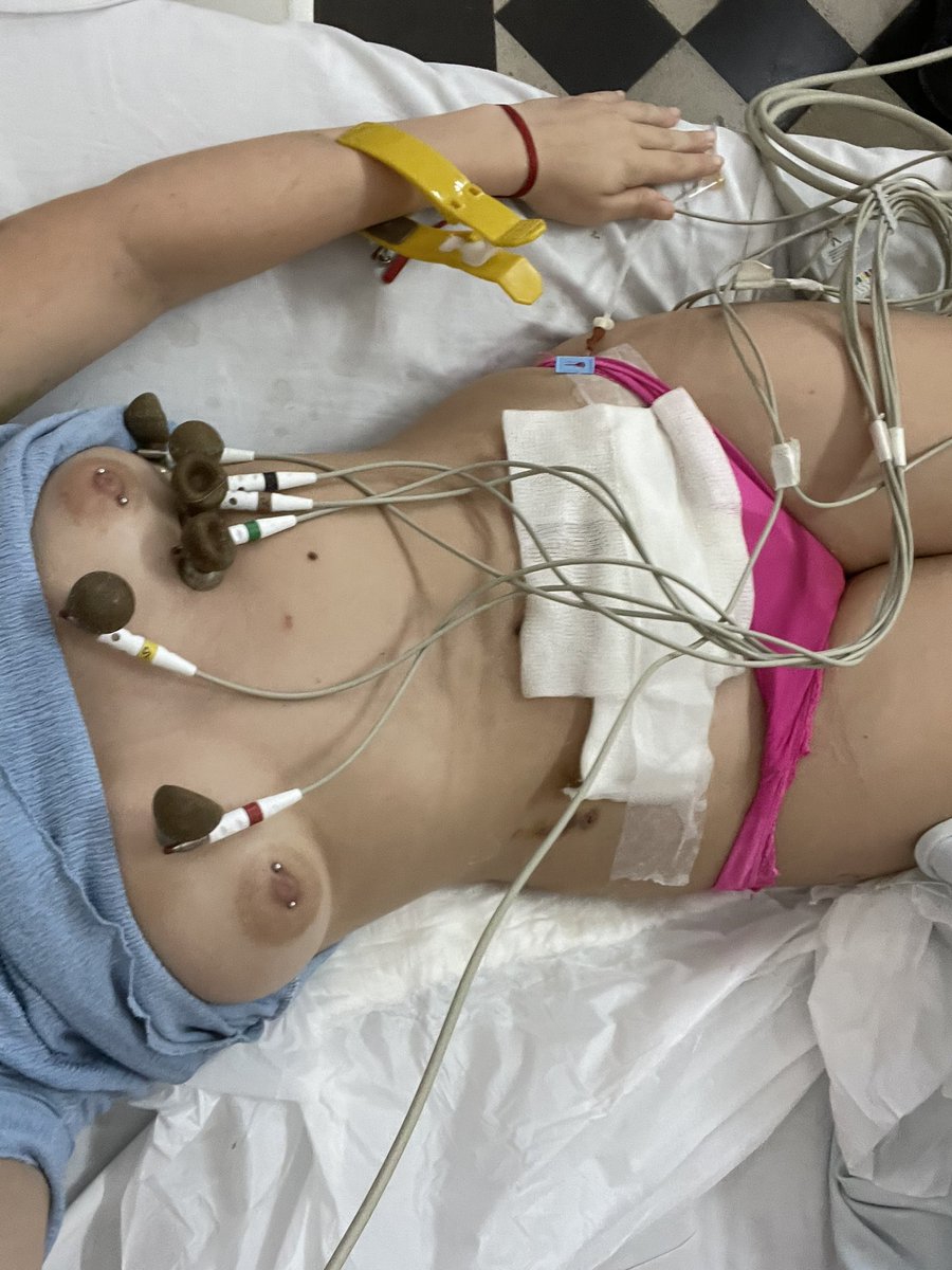 >>822688 Не в платье, а в леггинсах-колготках, их тоже снимать нужно, так как на ногах нормального контакта не будет. Конечно, если снимать ЭКГ по принципу "гос.поликлиника" "и так сойдет", можно пациента и в колготках оставить, но расшифровывать это с наводками потом - мда
