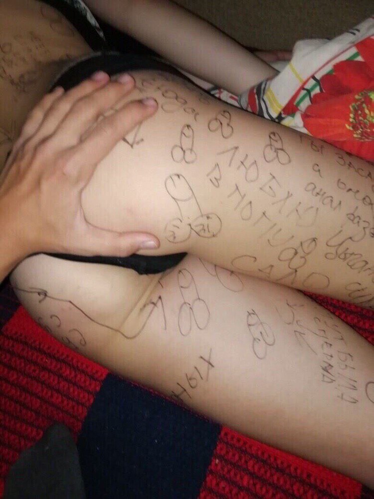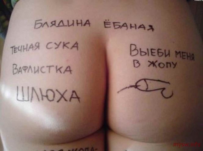 Так подписал свою, когда трахал в жопу во время этих дней. Нравится этот фетиш, но минус в том, что нет большого разнообразия. Одни и те же надписи чаще всего на английском кочуют везде. Может кто посоветует что можно ещё написать максимально развратное или унизительное (она от этого прётся).