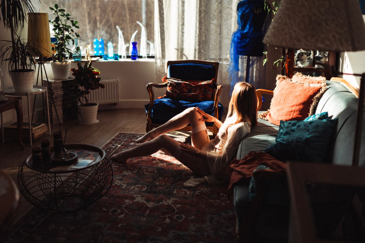 Сначала фыркала на то что прошу её надевать белье в цвет чулок, но после моих рассуждений на серьезных щах о том, что надо соблюдать стиль лол втянулась в это сама.