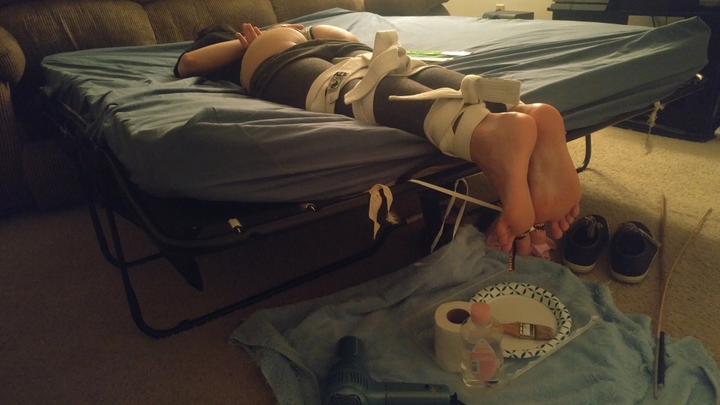Меня особенно зацепили самые близкие к зрителю пятки: они розовее остальных, отчего выглядят нежнее и чувствительнее. Возможно, они были такими всегда. Но мне нравится думать, что сначала они наоборот слабо реагировали на щекотку, поэтому медсестра устроила им "спа-уход" с нанесением всяких увеличивающих чувствительность кожи кремов.