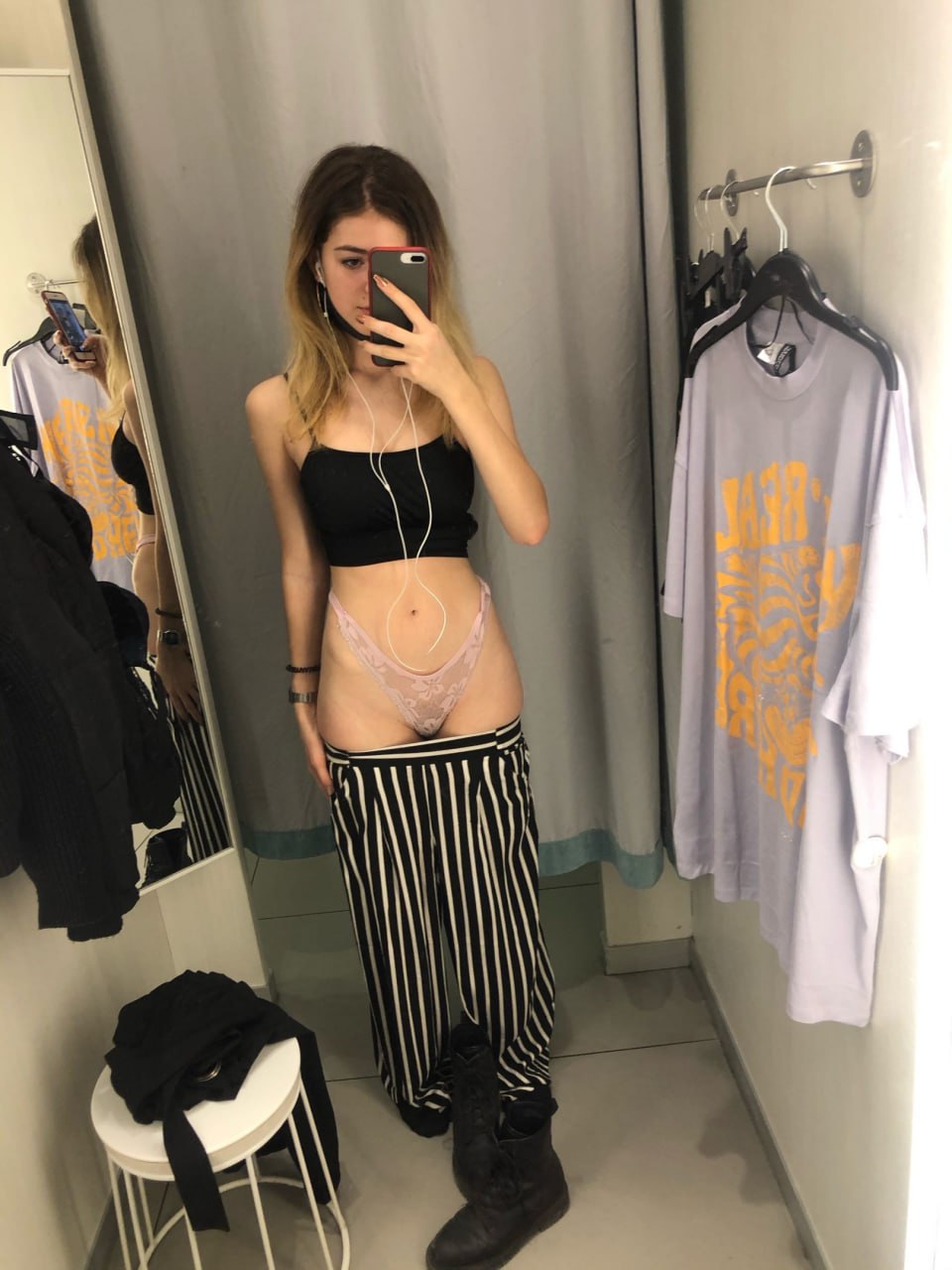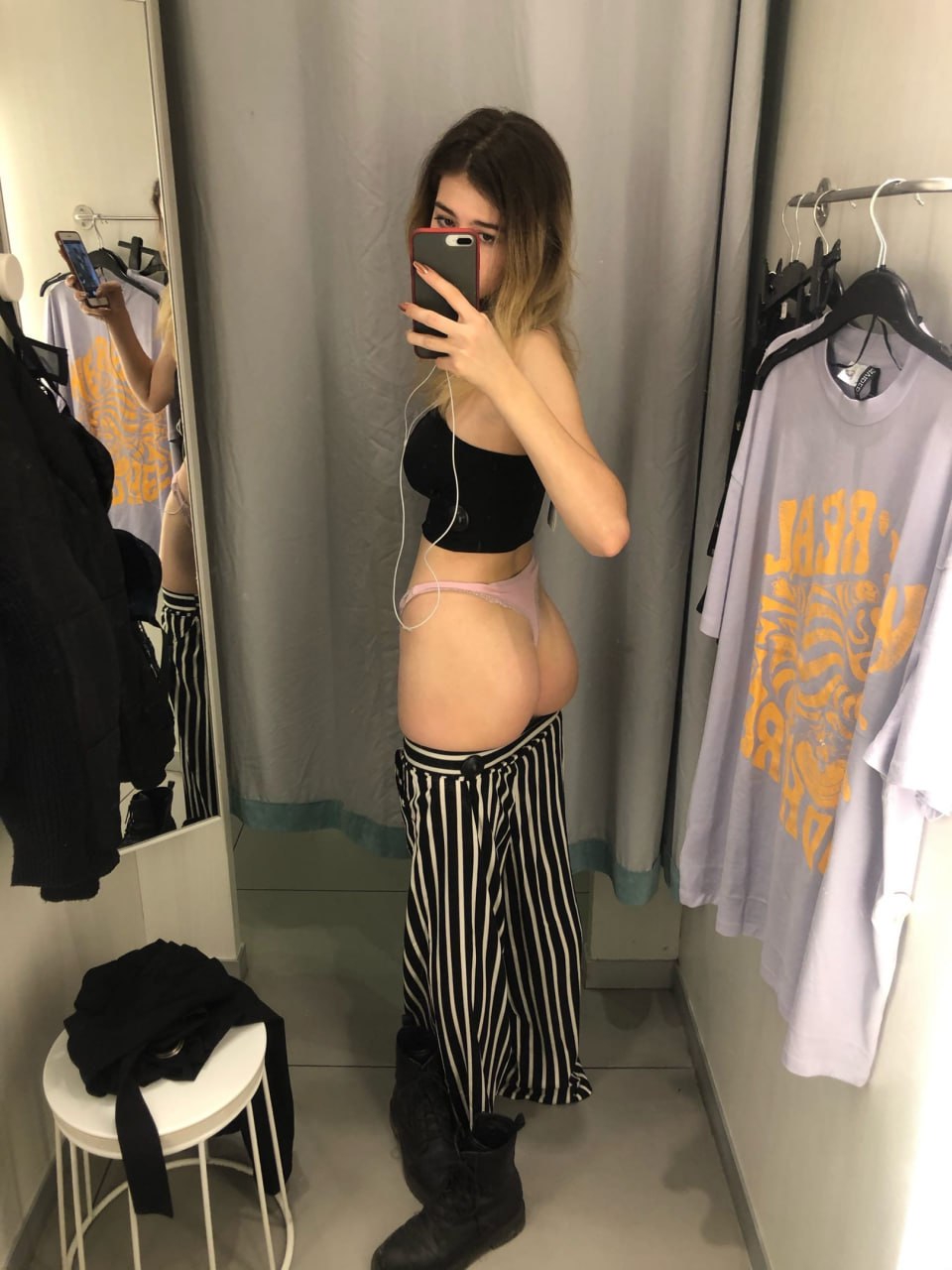Не нашел, а создал. Всегда с волнением смотрю на фоточки из примерочных. Приходит осознание, что девушка делает эротическую фотографию в окружении других людей, порой отгороженная от них лишь куском ткани.