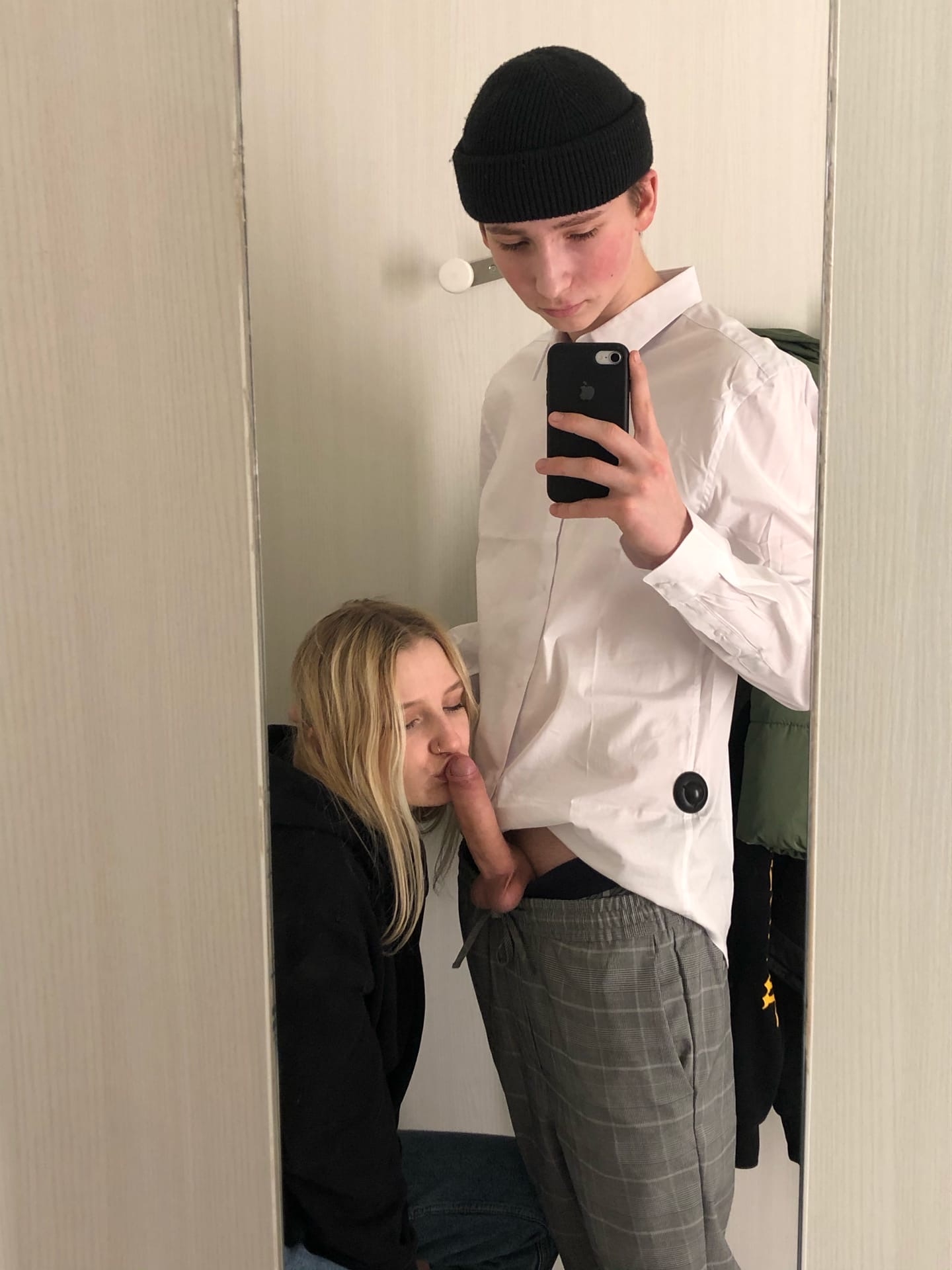 Всегда хотел найти именно в два смычка еблю в примерочной, не постановочное, а более менее любительское, ниразу такое не встречалось, анон, есть такое ?
