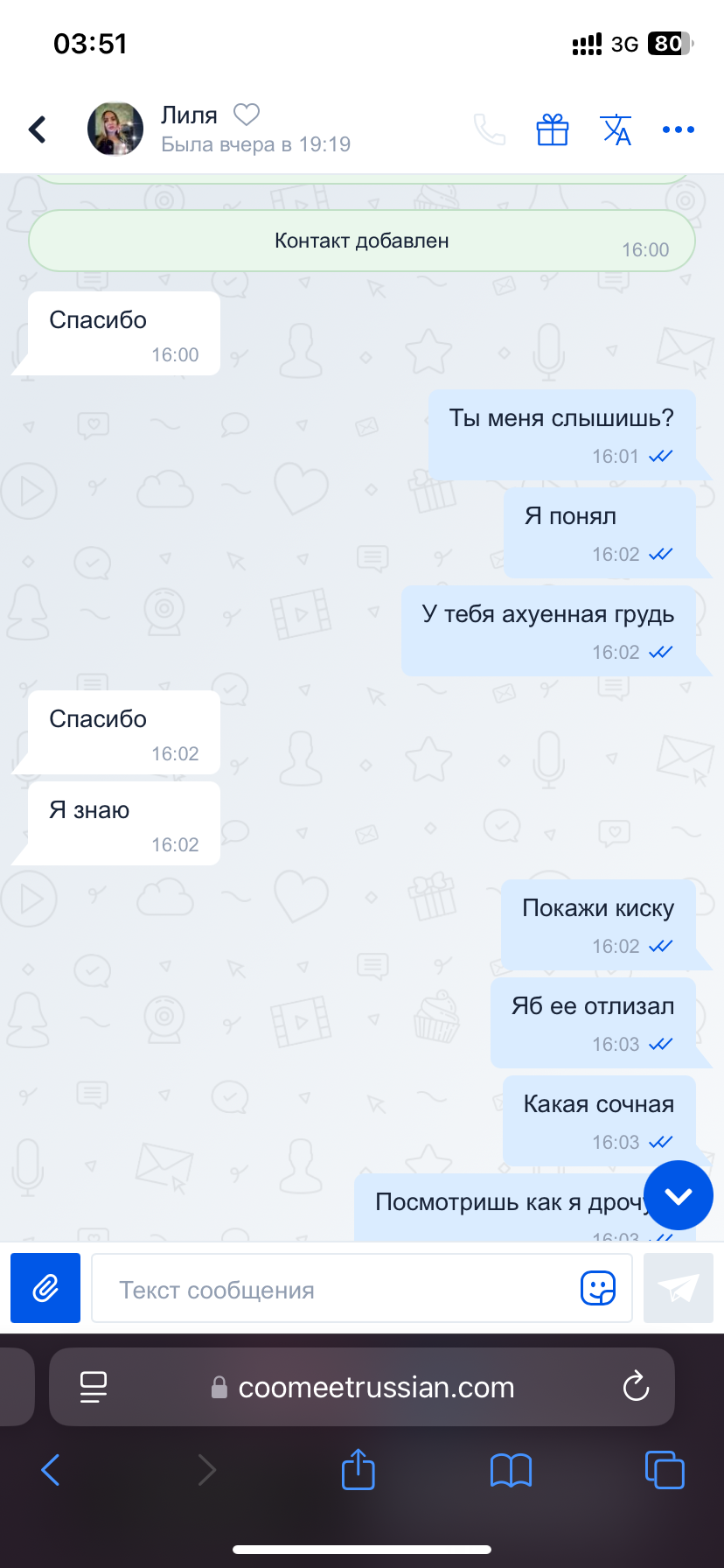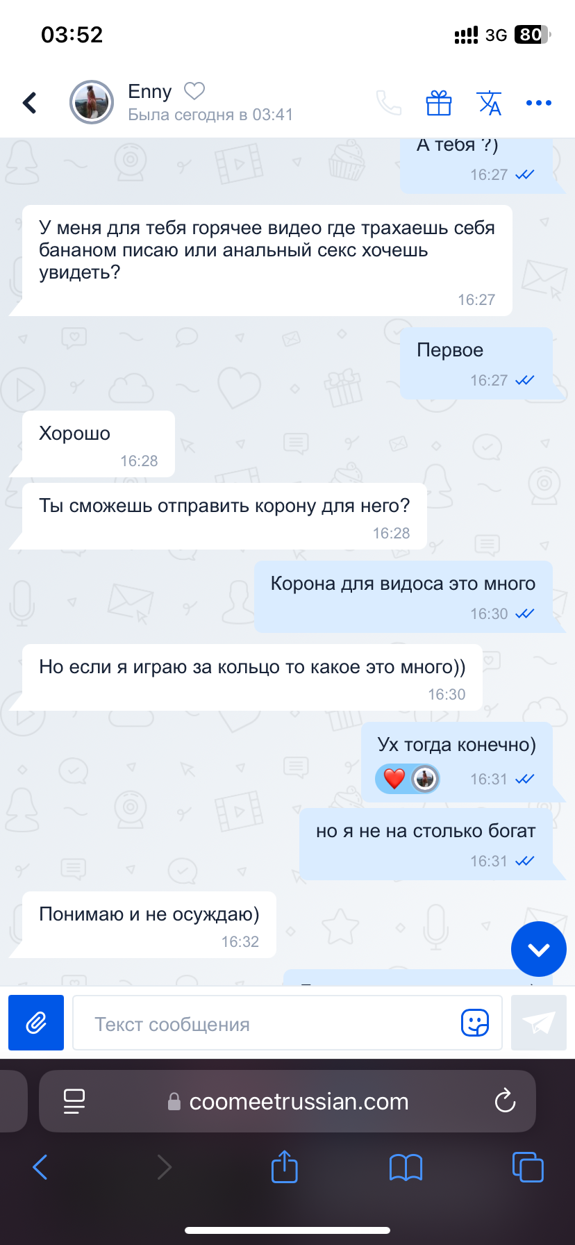 Может не совсем в тему,подсел на coomeet.com дорого сука конечно потратил уже около 10к на прем и минуты,но как то затянуло это,80 % того сайта это латинки но есть и наши тянки,принципиально искал их,есть ахуевшие подруги которые за сиськи просят кольцо а есть и тянки в внешкой 100/10 и за цветочек все тебе покажешь и с тобой пофапает ,записи экрана побоялся делать мало ли забанят