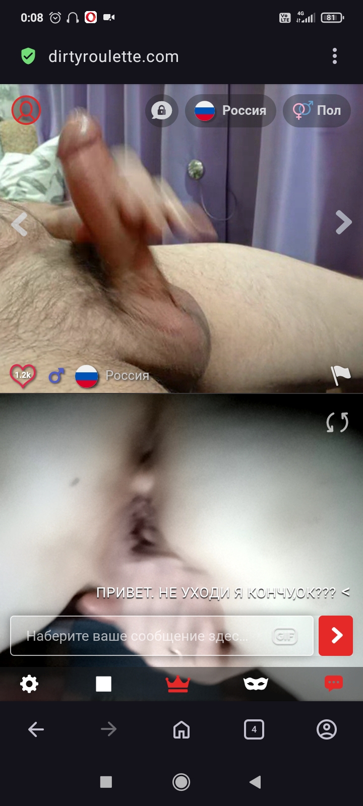 Вчера зарегался в этом вашем флингстере, показывал попку своей, пока она спит, попалось 2 пары: 1. Такой же как я; 2. Уголёк дрочил своей, когда она лежала у него на пузе. В общем - открыл для себя новый фетиш! Может есть какие-то рулетки, где люди не будут ожидать, что сейчас им шоу покажут. И где не словишь бан за цензуру или слив по аккаунту.