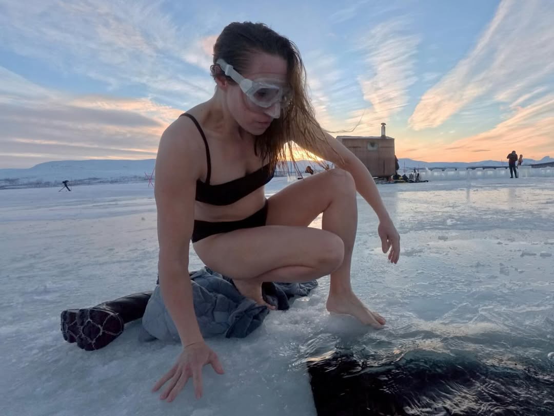 Она поставила правую ступню на край льда. Надавила. Раздался тихий, звонкий хруст. Лёд поддался, и её ступня плавно ушла вниз, в чёрную воду. Ощущение было таким интенсивным, что у неё потемнело в глазах. Не просто холод. А последовательность: сначала твёрдая, хрупкая поверхность, потом её разрушение, и наконец — ледяная, жидкая стихия, обнимающая ступню. Она втянула воздух со свистом. Простояла так несколько секунд, позволив ощущениям достичь мозга, запомниться.