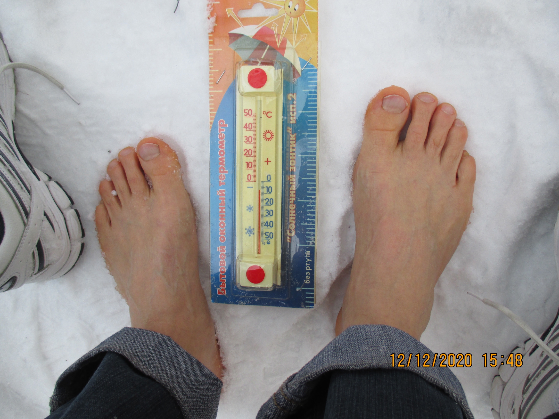 >>834371 >бегала по снегу очень долго Интересно, сколько, пару минут? Ступни даже не покраснели! >и, кажется, временами забывала, что она босиком, а на улице минус Через определённое время ноги привыкнут, так же, как и тело. При чём, новички, когда определённое количество раз ходят босиком по снегу без последствий в -6, выйдя потом так же в -20, ловят обморожение 2 степени, оно для здоровья не опасно, обычно проходит без последствий, но весьма не приятно, а бывалые моржи/барефутеры уже знают предел. Так вот, если походить босиком минуту-другую - ногам станет не холодно, и так же как если полежать голым в снегу минуты 2-3, когда вылезешь из сугроба, будет вообще не холодно и можно долго так гулять. >Маша спортсменка, закалённая Ну, вот, с чего бы ей заболеть?