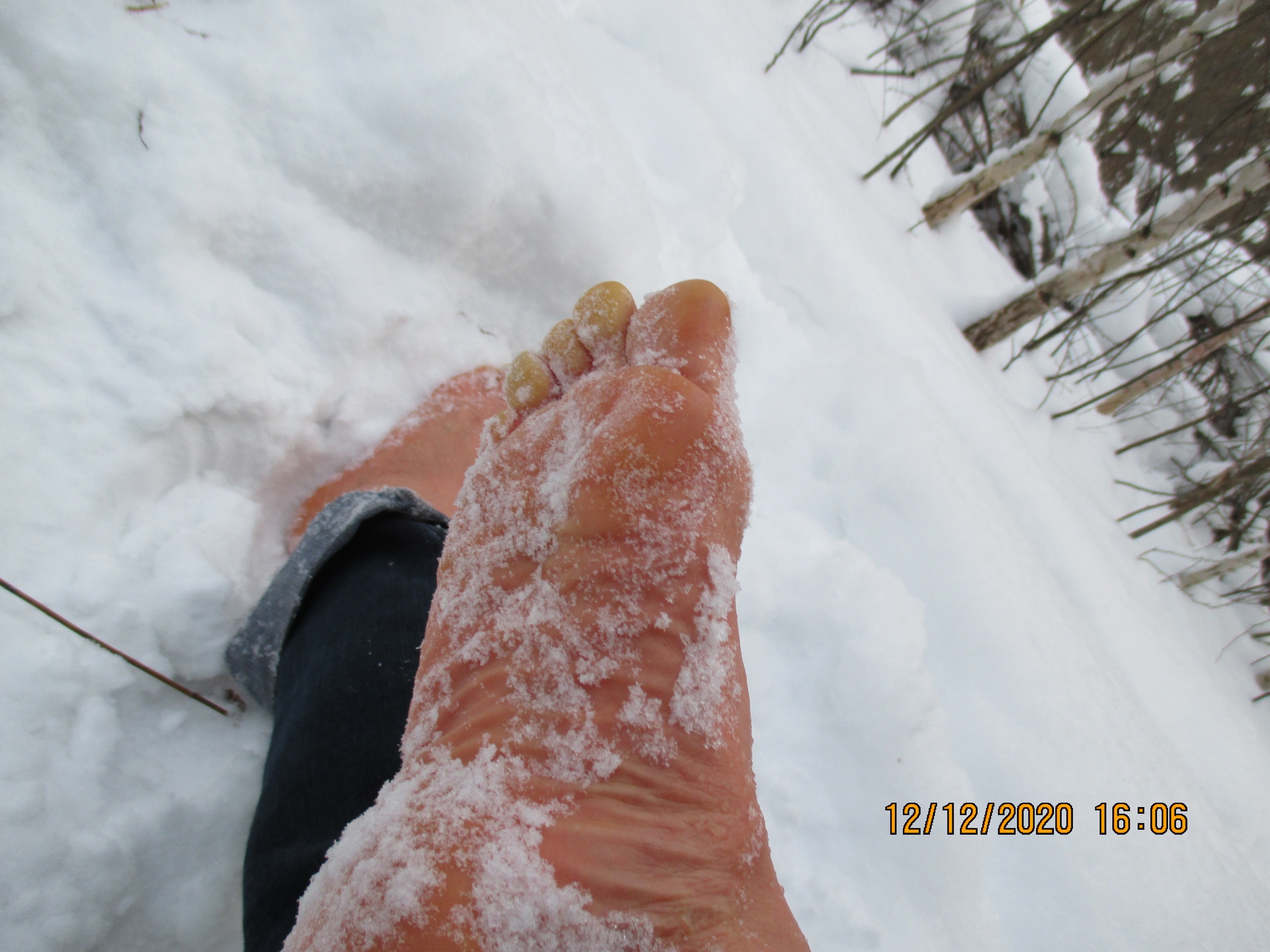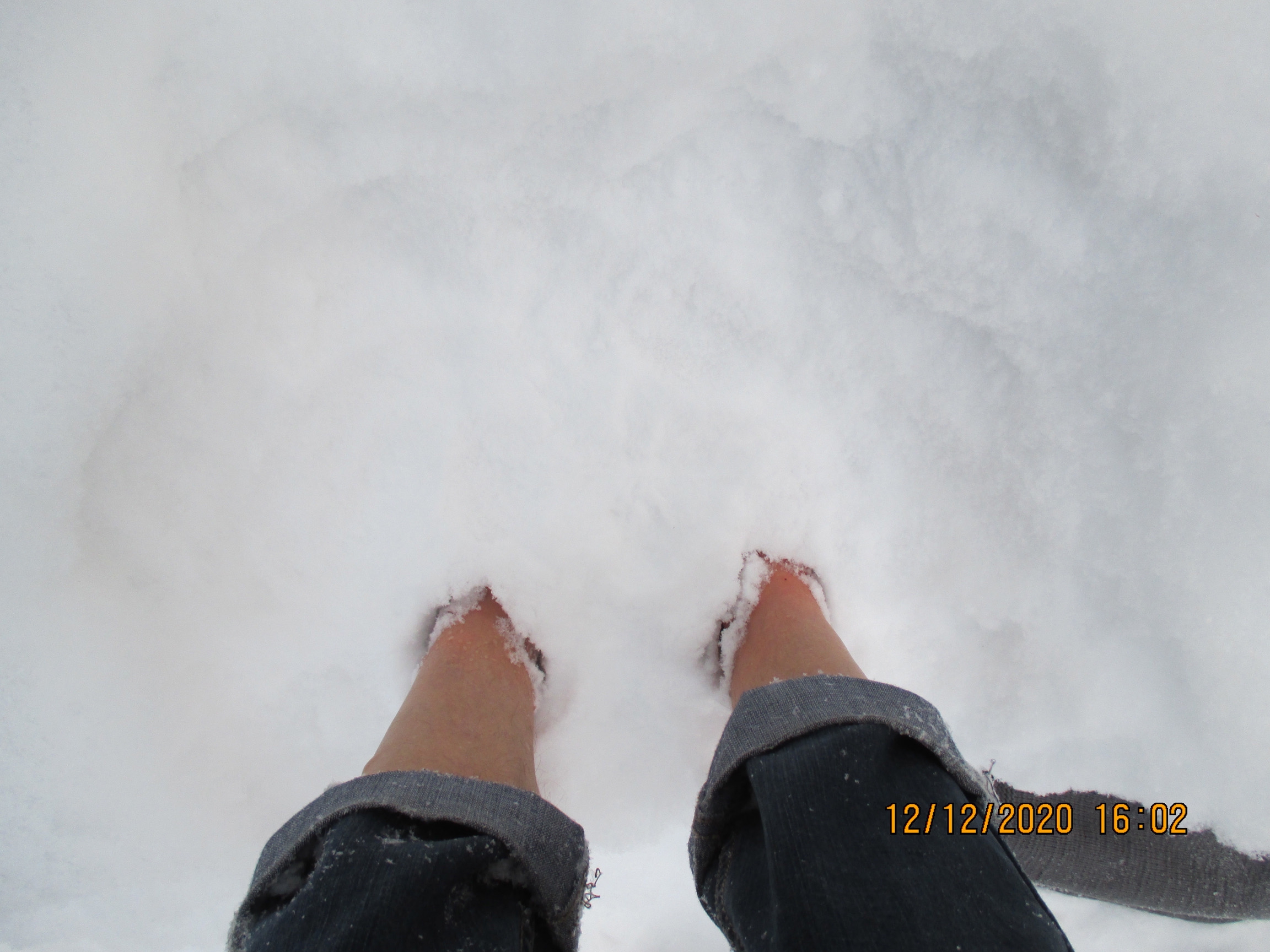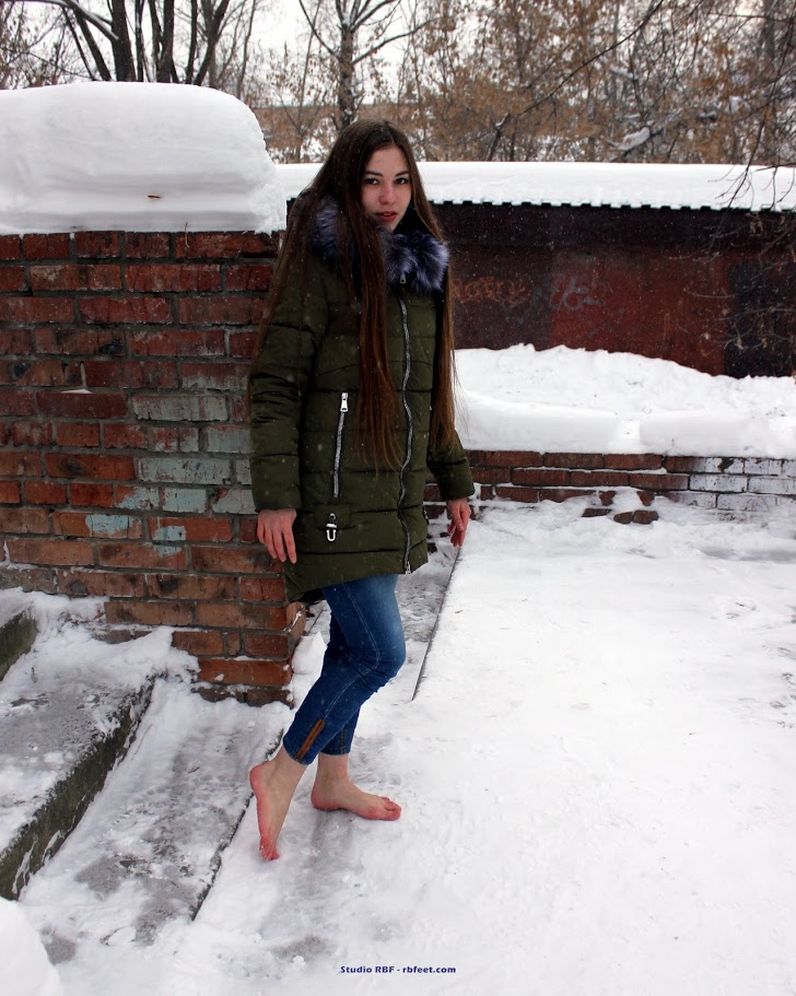 Пожалуй самым интригующим в тематике Снеготреда, являются продолжительные прогулки босиком по снегу. Предлагаю посмотреть фотосессию на тему длительного нахождения босиком на снегу, отснятую нами несколько лет назад. На первом снимке, модель еще готовиться разуться. Для большей обЪективности, на снег положили термометр