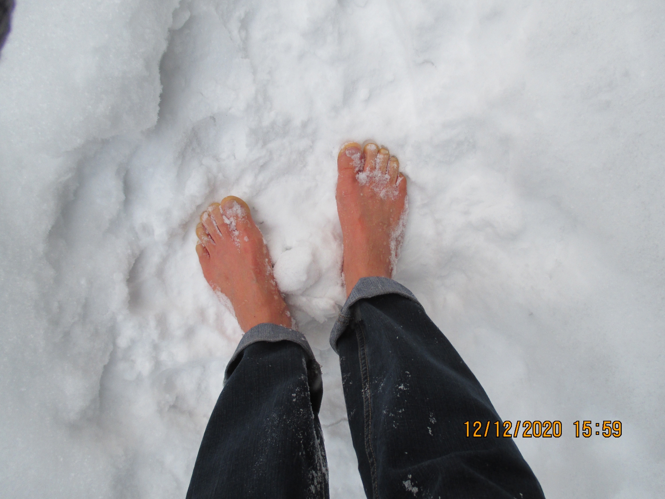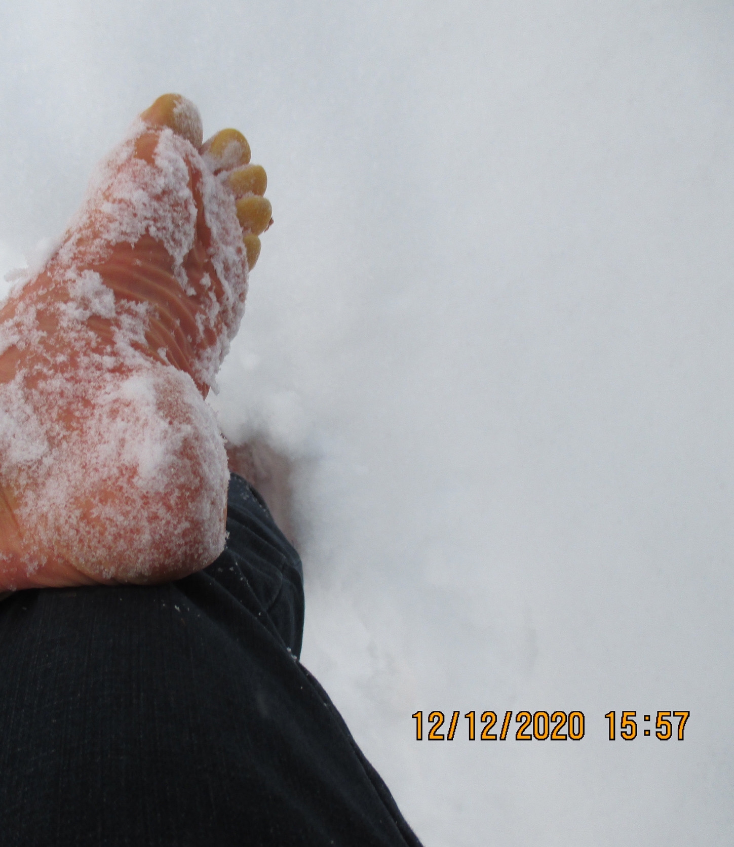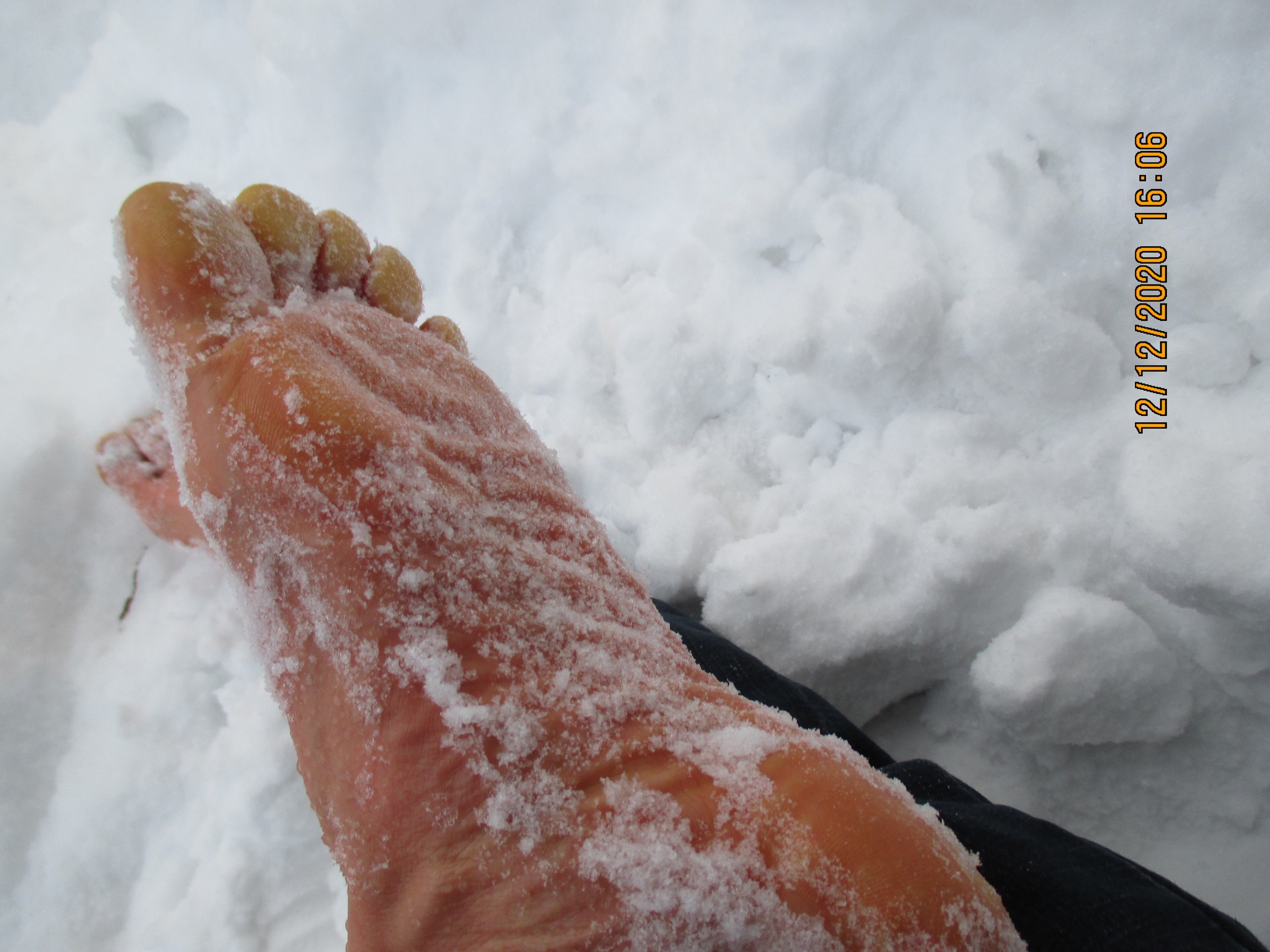 Пожалуй самым интригующим в тематике Снеготреда, являются продолжительные прогулки босиком по снегу. Предлагаю посмотреть фотосессию на тему длительного нахождения босиком на снегу, отснятую нами несколько лет назад. На первом снимке, модель еще готовиться разуться. Для большей обЪективности, на снег положили термометр