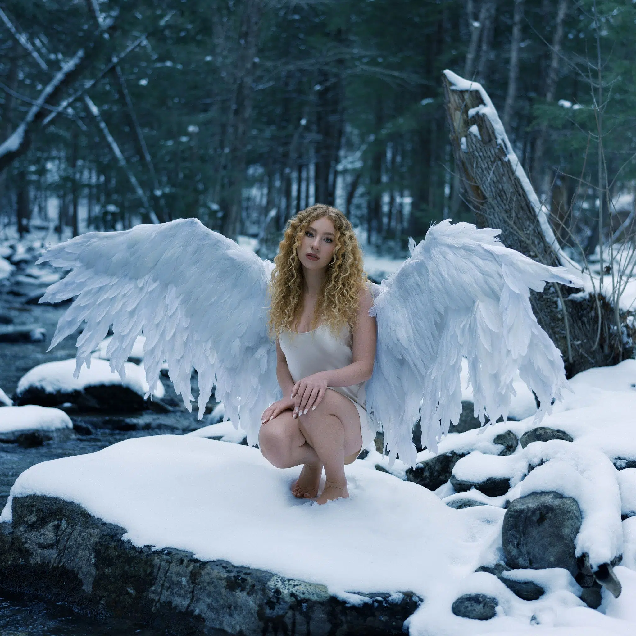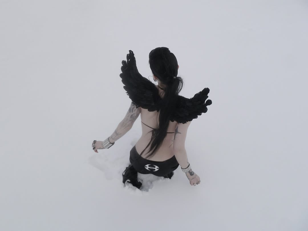 Шарашиться по снегу на таких каблуках - как-то гупо даже для ангела, даже для падшего ангела. Разве что его как-раз и низвергли на Землю за безвкусицу и вульгарность в одеже. И теперь он (она) копошится во прахе в снегу... Извиняюсь, не удержался от шпильки.