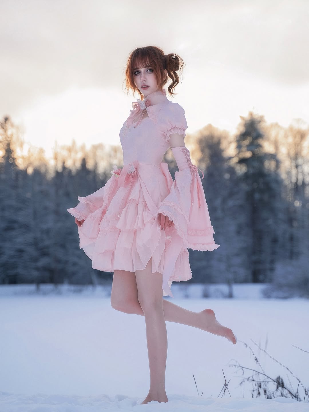 Мороз сразу вцепился в её голые плечи, ветер сорвался с угла здания и хлестнул под подол, от чего ткань взвилась, обнажив бледные бёдра. Девочка инстинктивно прижала края платья к ногам, но это мало помогло — промозглый декабрьский воздух проникал повсюду, будто нарочно проверяя, что у неё не осталось ни единого клочка утепления. Вокруг с визгом и хохотом разбегались по домам остальные ученицы — такие же легко одетые девочки. Кто в коротких платьях, кто в тонких костюмчиках с голыми животами, кто в шортах и пляжных тапочках, словно был не декабрь, а август. И лишь дыхание, клубящееся белыми облаками, да снег, хрустящий под ногами, напоминали о настоящей погоде. А её подруга Танечка — та вообще побежала босиком. Совсем. Без обуви. Её ступни шлёпали по снегу, оставляя за собой цепочку отпечатков, и при каждом шаге снежная пыль взметалась вверх, облепляя её лодыжки. Но она не останавливалась, не жаловалась — бежала весело, словно это была просто игра. Щёки горели, волосы растрёпаны, дыхание вырывалось облаками, а она всё равно неслась вперёд — словно играла, словно бежала не от холода, а навстречу какому-то веселью. Хотя Леночка знала: Танечка тоже мёрзла. Просто привыкла. Как и все. https://samlib.ru/m/morozec_t/lenochkabosonogya1.shtml