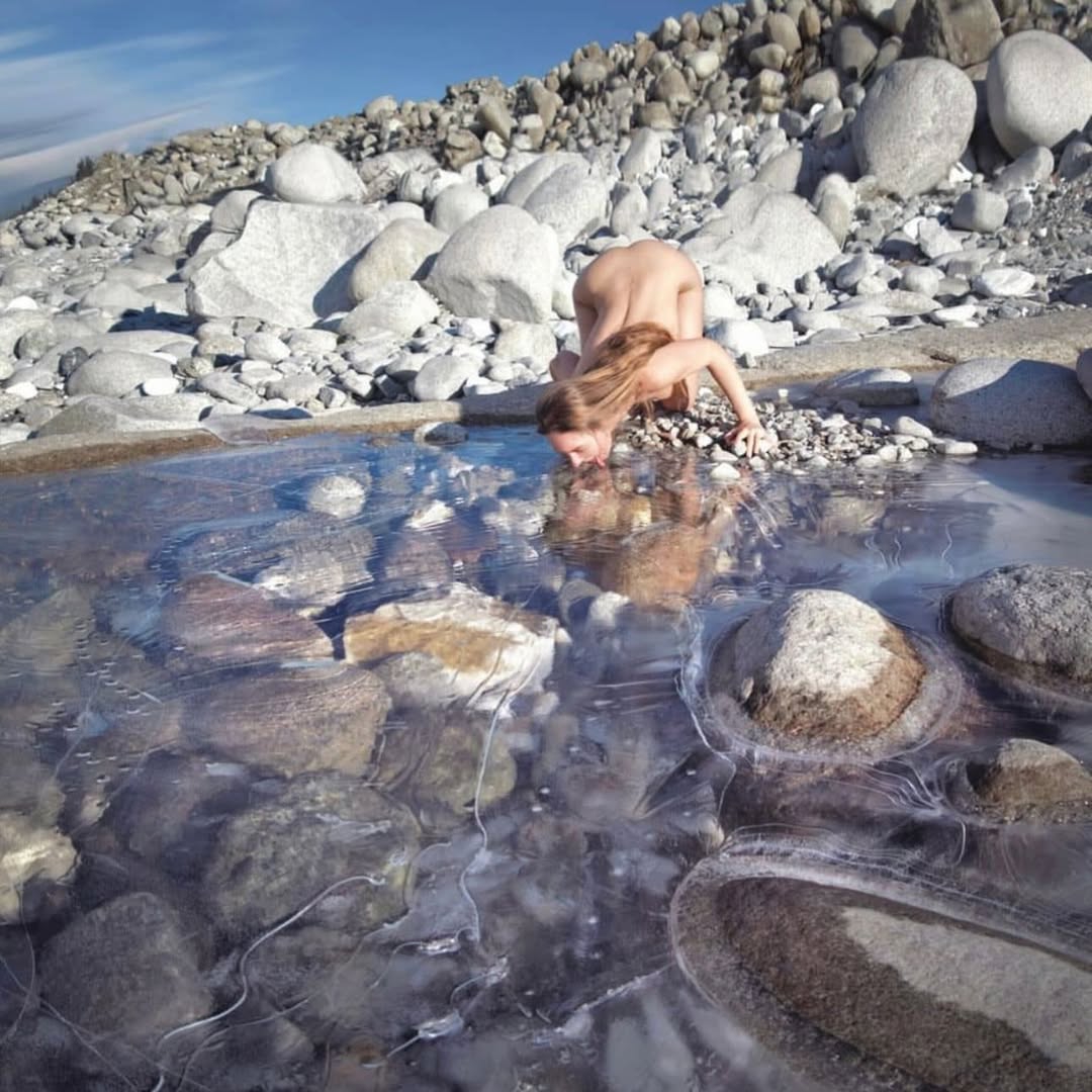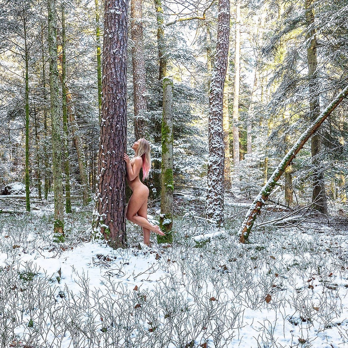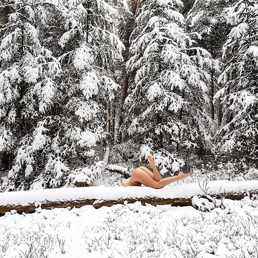 Интересно что в ее профессиональном, как модели, портфолио https://modelsociety.com/Model/riley-jade/photos - пропорция студийных снимков и снимков на природе (не говоря уже о "зимних") достаточная обычная... Но вот на Реддит, как понимаю она сама, выкладывает снимки совершенно определенного стиля - в основном на природе, полностью ню и босиком. В соответствующих сообществах типа: NotSafeForNature, hippie_chicks, NakedButNotAfraid и NakedAdventures