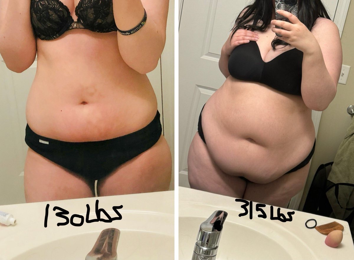 >>838589 Бывает и такое.Одна знакомая резко набрала вес.За год около 8-10 кг.Как раз плюс минус 25 лвл,165 см с примерно 55 кг до 65( с её слов, не взвешивал). В закрытой одежде не сильно заметно было, разве что второй подбородок появился.Но вот в открытой... её "старой" одеже разница была огромна.Так как мышечная масса осталась той же,а добавился только жир, везде.Равномерно, по всему телу, плюс появился даже не животик, а такое вполне себе скуфское пузико.Этакий бесформенный кусок желе.