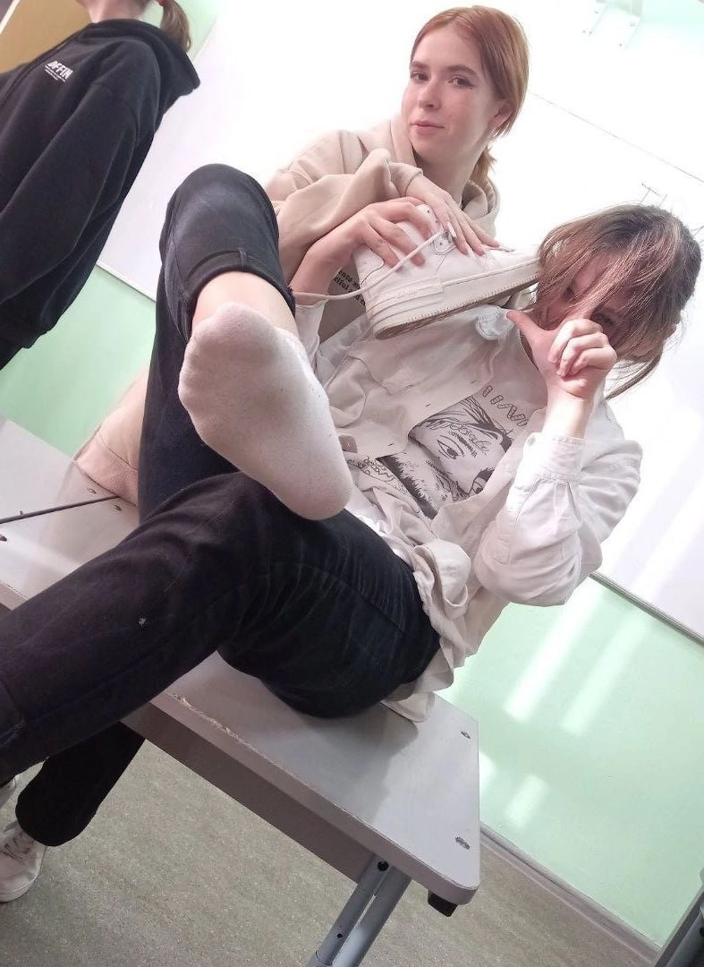 Любуйтесь. Я до сих пор вспомниваю, как она один учебный год балетками баловалась, почти каждый день. То в колготках, то в носках, только успевал любоваться её лапками. Однажды на физру приходит такая на носочках в балетках, в зале скидывает их и топает такая в своих носочках белых. Если есть желание, расскажу по больше.