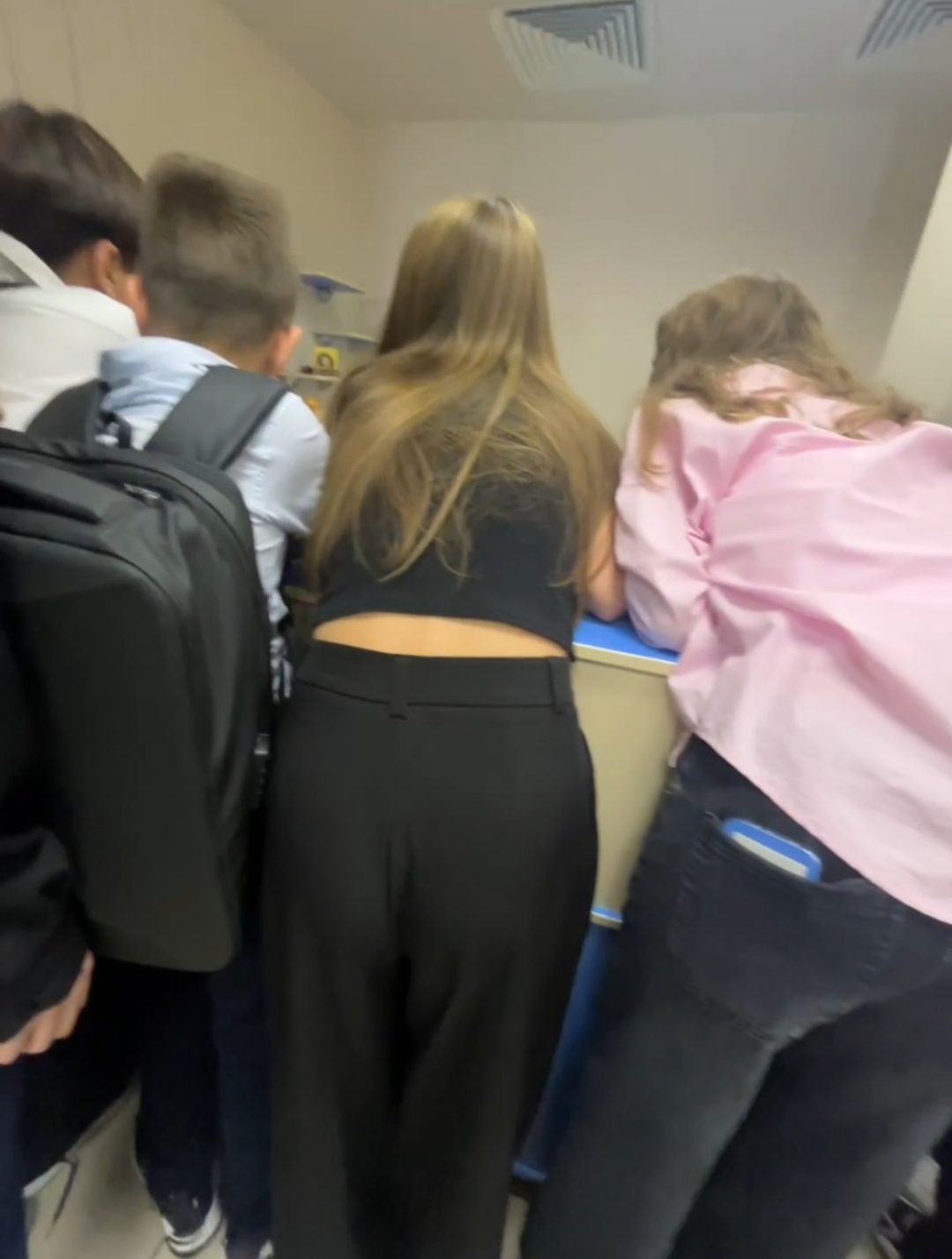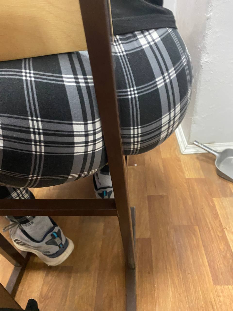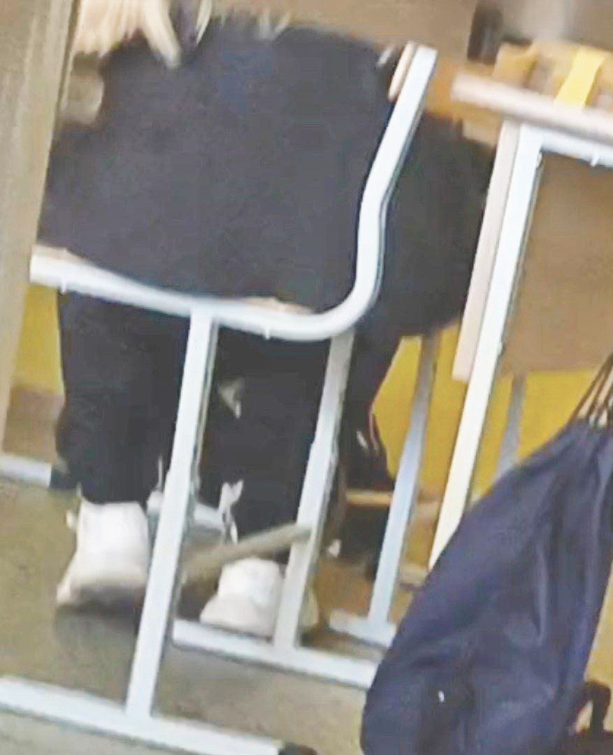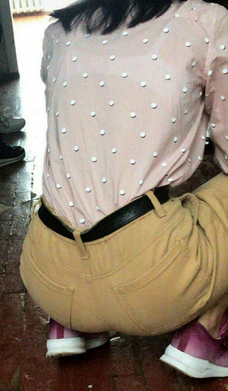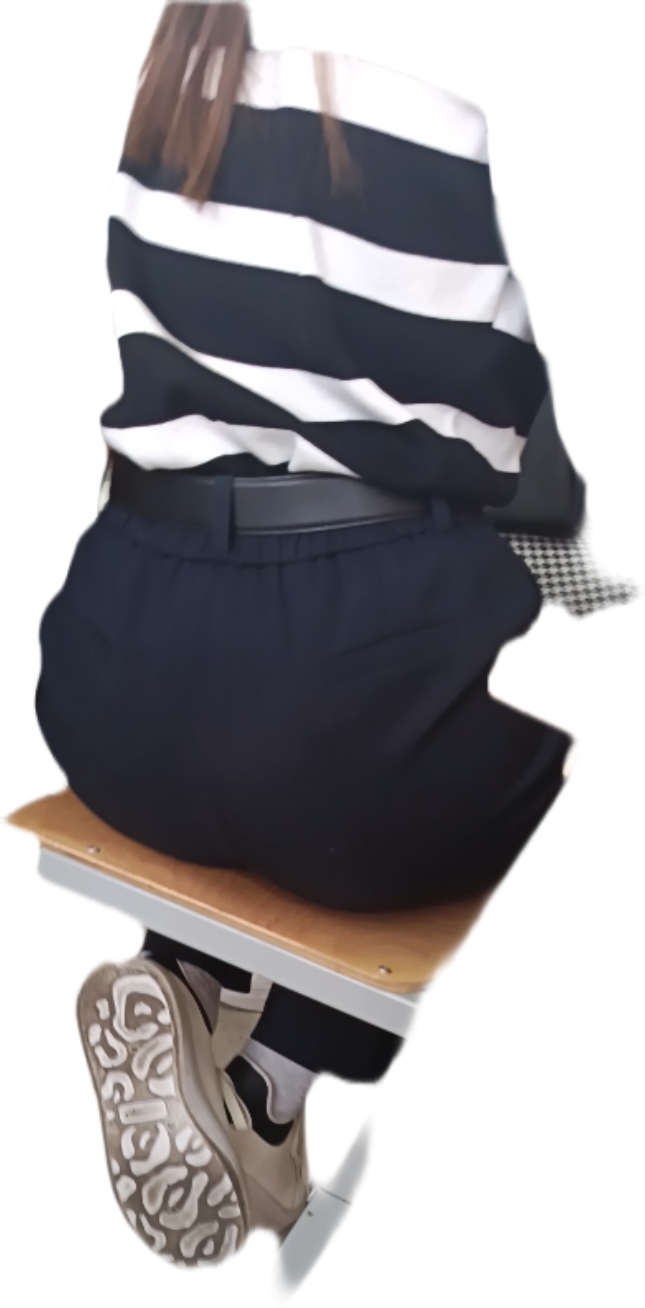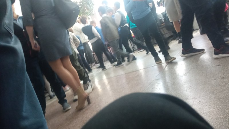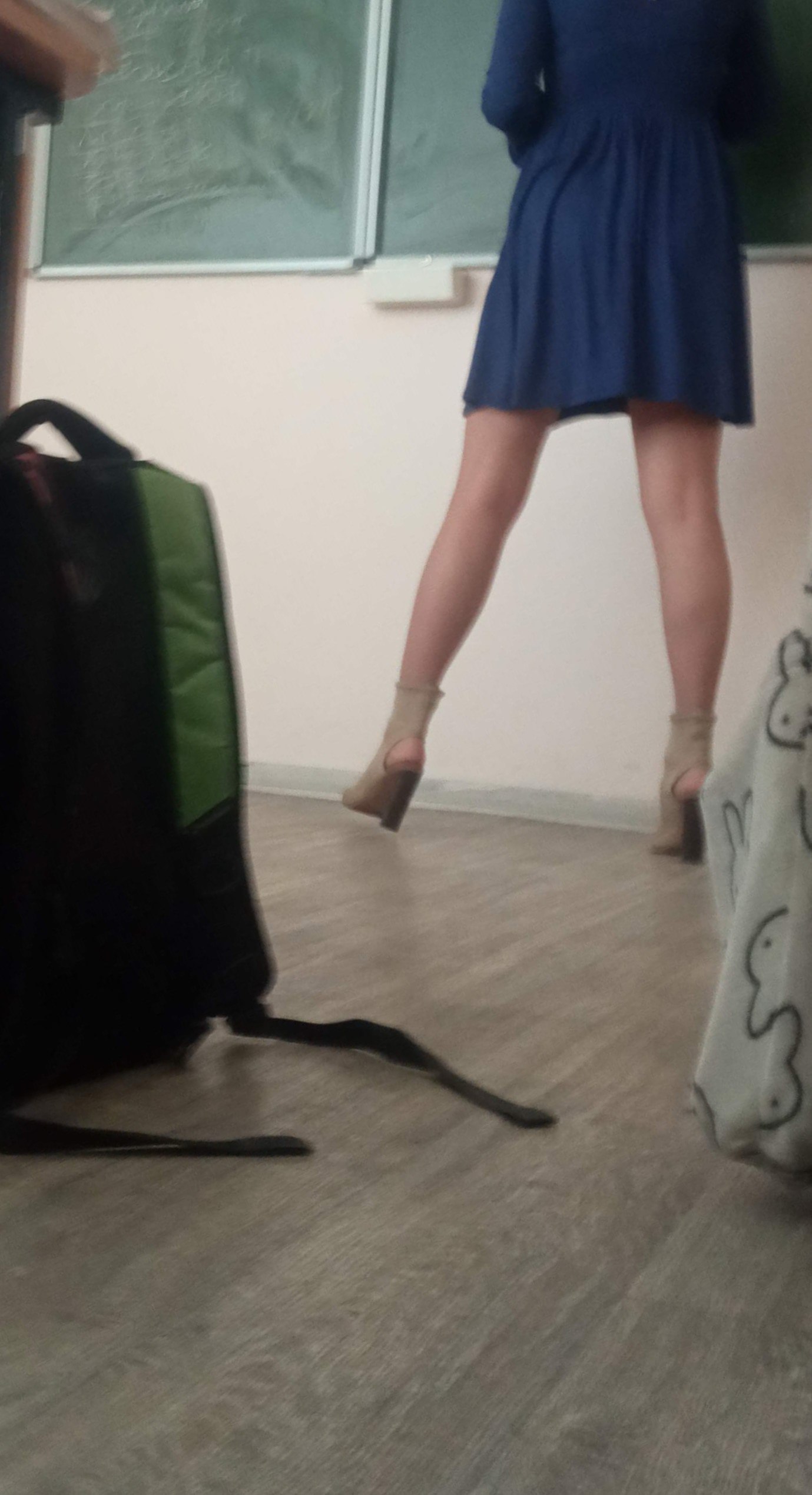 Моя однокурсница делала разминку: она дотягивалась до носочков, поднимала ногу вперёд сгибая. Её жопа прям выперлась. Но, как видно по моему материалу, я не успел заснять...