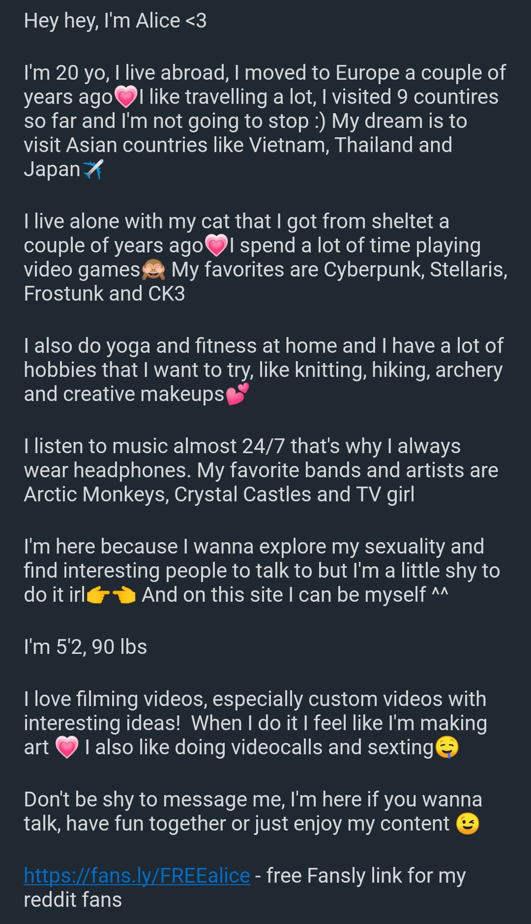 >>842735 → >30-34 это нихуя не зрелые, лол. Да зрелые вполне, ты просто постарел как и я лул >>842735 → >Да встречались пару месяцев, сразу совпали по теме фф Расскажи подробнее. У меня так произошло: встречались с тян которая наоборот была на 10 лет младше (ей на тот момент было 16-17 а мне 26-27), я ее пытался трахнуть но секса не давала. А так вообще очень сдружились, бухали пиво вместе смотрели кинцо и тд, кстати не скажу что она меня как-то финансово абьюзила, видимо ей самой нравилось со мной "дружить", (один раз залез в ее ВК и оказалось что я топ-1 ее друзей), и вот всегда она ставила мне ножки мне на коленки когда сидели рядом и смотрели кинцо, иногда еще говорила сними мне сапожки, когда приходили в хату, короче в один момент я попытался в очередной раз ее трахнуть и снова отказала, и я сказал "давай ноги тебе вылижу". И на мое удивление она сказала "да, давай", уменя сразуу шишка в небеса улетела. Потом не раз этим стращала, когда лез в трусы могла сказать "могу только ножки дать полизать" и тд. Причем в обычной жизни в последствии продолжали общаться как друзья, никакой хуйни типа как в пореве "госпожа-раб" не было. Даже пыталась меня защищать, когда допустим быдло какое-то лезло в ебальник дать на ночной улице.