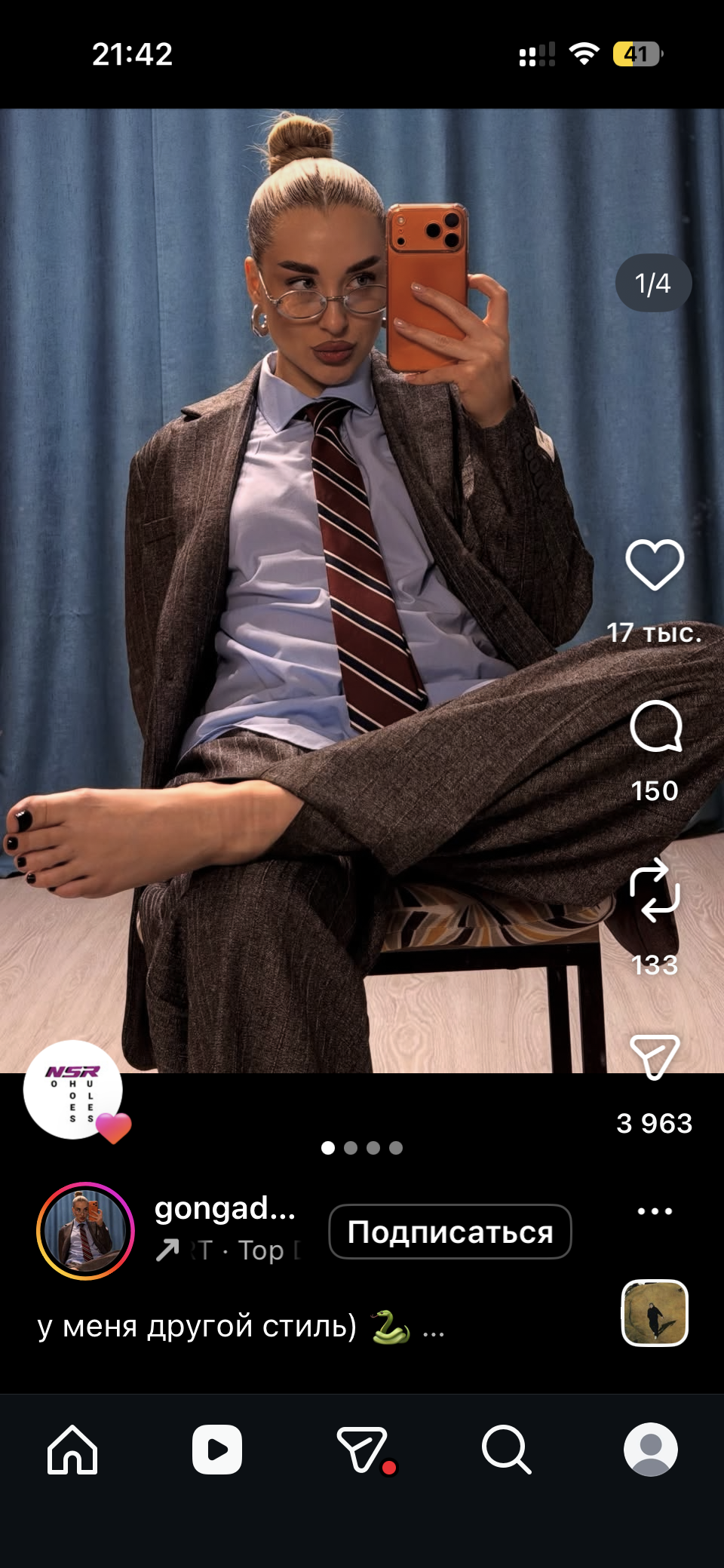По своим наблюдениям, тред незаметно задает ебать какие высокие стандарты когда сюда начинают постить тянок типа первых двух из ОП-поста которые Валентина и Диана. Потому что стройная симпатичная тян без ботоксного лица, с хорошим чувством стиля, да еще и соответствующая негласным канонам треда "высокая, длинная, изящная, нога 40+ размера" - уже пиздец трудный критерий для поиска. Что уж говорить о наличии воображения (оно требуется чтобы снимать все эти ролики), а тем более о подыгрывании ногоебам. Это совсем самородки. И осуждать их за попытки заработать на сообществе, где большинство трясутся от мысли подойти к реальной тянке и лучше купят ее ношеные носки, рука не поднимается.