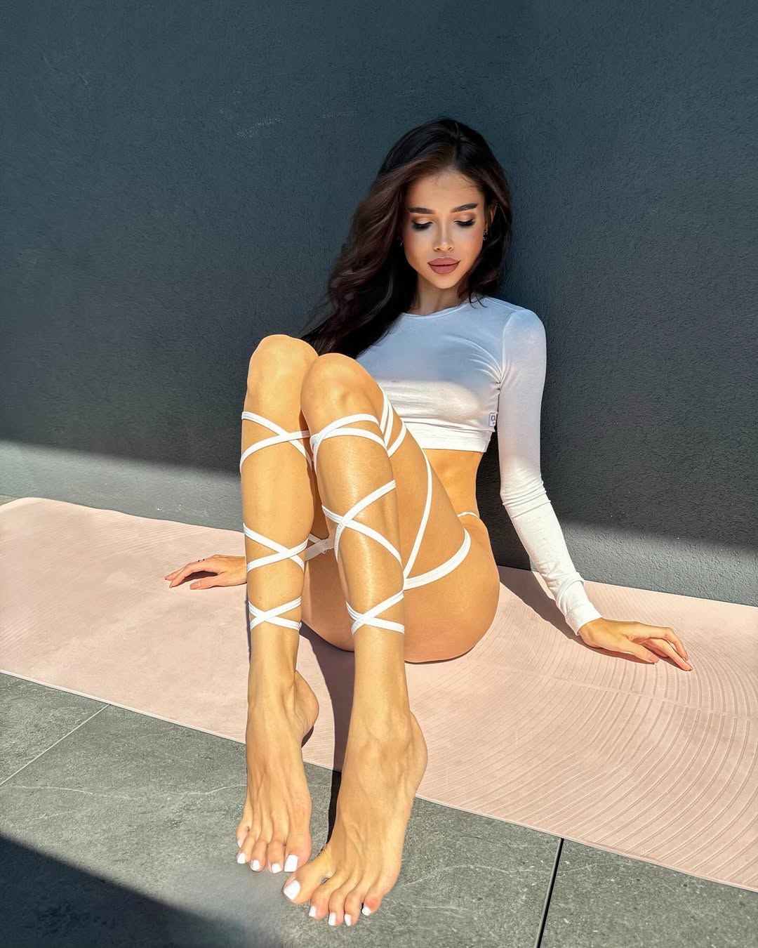 Идеально ровные длинные пальчики, длинные прямые ноготочки, в том числе на мизинчике, просто охуевшие изгибы свода стопы и при этом 36(!!!) размер. Это Ольга Сафронова. Когда-то давно вела группу в вк.