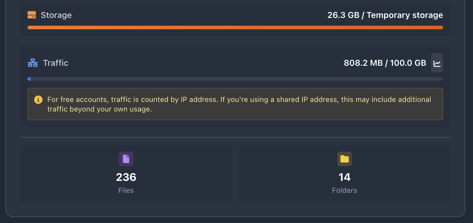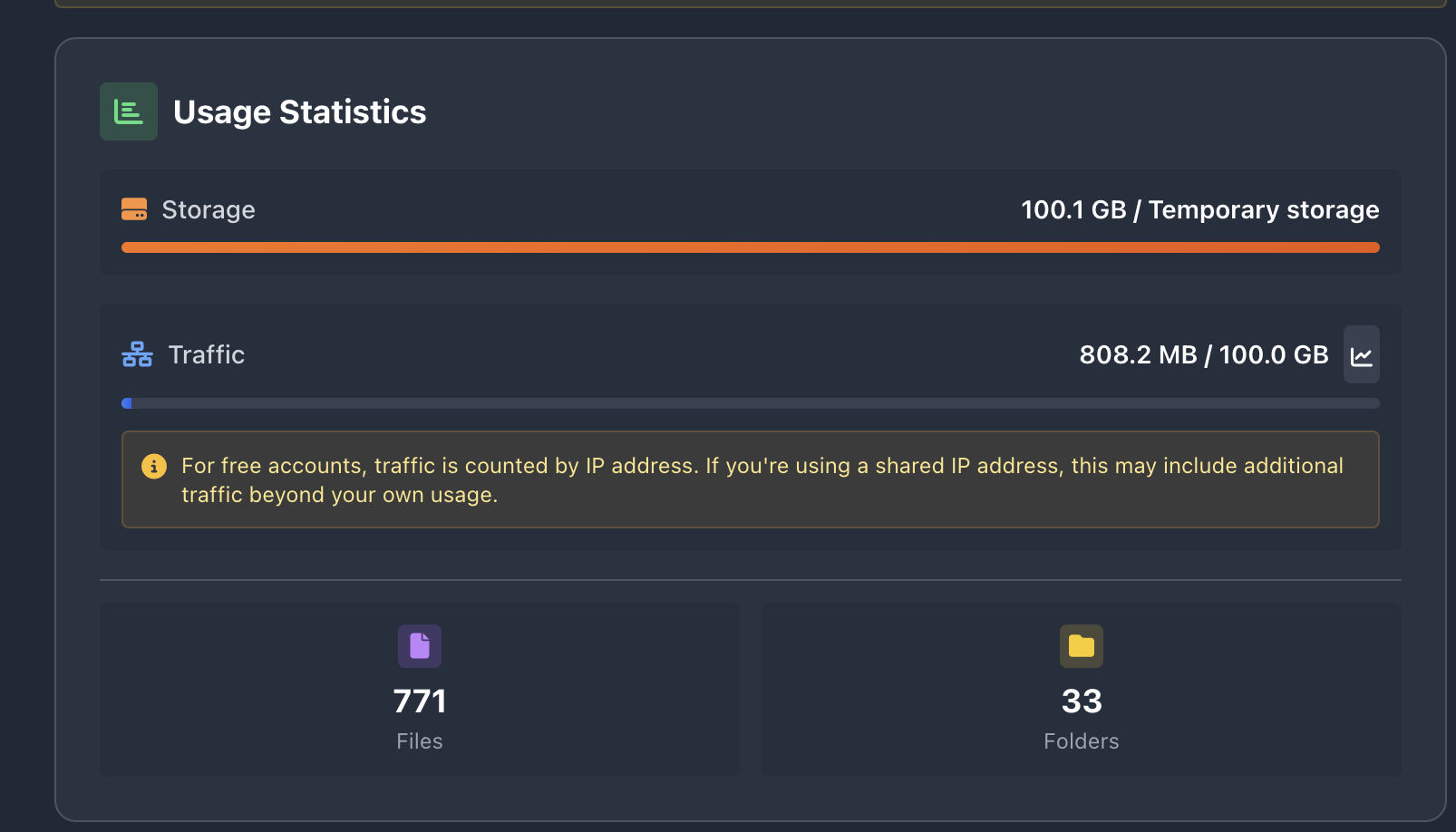 >>858617 >Хотел узнать, может кто в курсе, какие ограничения у gofile? Это ты им что-то заплатил или бесплатной версией пользуешься, какой объем тебе доступен для использования? Ну и какой срок хранения, через сколько времени все эти архивы сгорят? Пользуюсь бесплатной версией без аккаунта, ограничений на заливку вроде как нет, есть ограничение на скачивание ( до 100 гб) с одного ip. Срок хранения - 10 дней с момента последнего скачивания