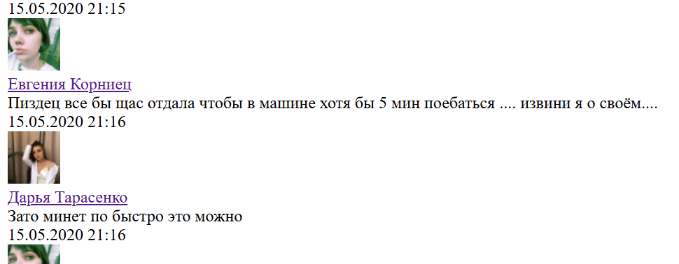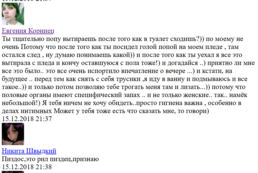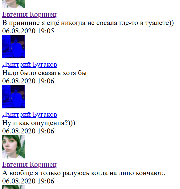 Помню с одного дампа шышка улетала. Я уже не вспомню имя и даже по фото не опознаю. Но прикалывало что при наличии парня она тайно переписывалась и интимки кидала. И в одном диалоге с подругой было такое. - Короче я все таки с тем погуляла и мы с ним пососались. Сейчас вот лежу со своим а в голове только мысли о поцелуи с тем и как я его член трогала
