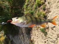а вот и опять я с неудачами, щука взялась ну просто блять сказка, самая показательная поклевка за всю мою карьеру, на границе травы и чистой воды на свале, дал небольшую паузу и почти сразу удар и вот такая красавица была отпущена, а потом я стал ловить окуньков, которым сегодня очень понравился зелененький фанатик коптильни опять задымились, воблер от очень известной фирмы трулинойя, заглубление до трех метров, копия эвергрина помоему, какойто там кренк, все тот же неудачник-кун разбавлю ваще говно рыбой, а то совсем забудете как она выглядит