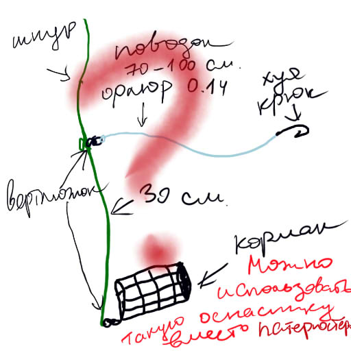 Допустим у меня прямоугольная сквозная кормушка. Я беру и цепляю крючок на поводок на основную леску как обычно. Затем к самой кормушке привязываю ещё 2 мелких поводка сверху и снизу. Одеваю на них червей и втыкаю в кашу сверху и снизу петлей внутрь кормушки. По идее рыба начнет жрать кашу и точно мимо крючка не пройдет. Норм будет?