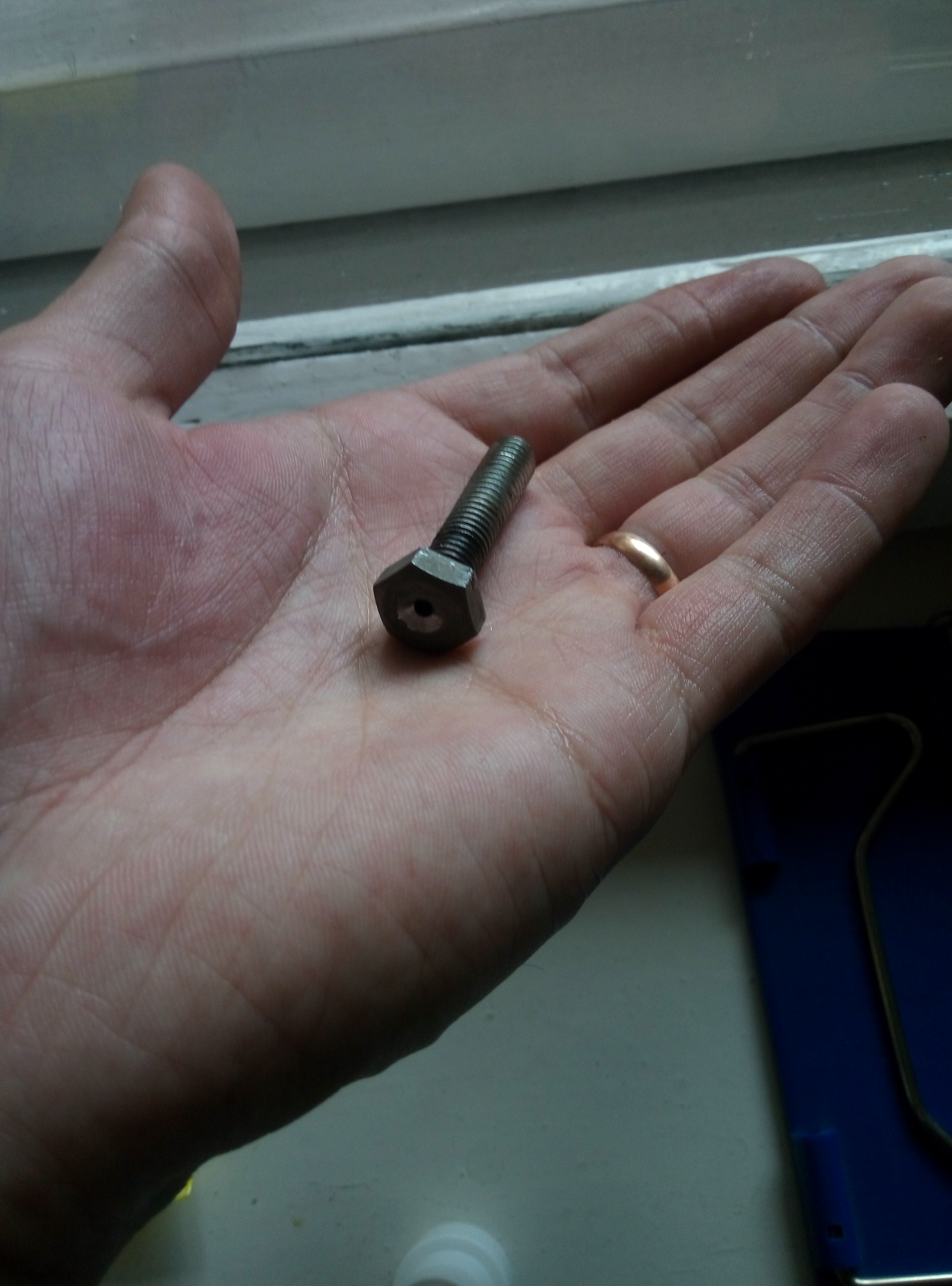 Это будущий тигель для расплавки свинца. Он электрический. Мощность ТЭНа 1кВт. Испытываю катастрофическую нехватку инструмента для работы, от того некоторые моменты выходят уродливо. Как например отверстие для выхода контактов спирали. Осталось сделать кронштейн для механизма запирания литника и найти минвату для теплоизоляции. Запирающий отверстие стальной пруток я по традиции спиздил.