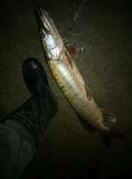 Вчера ночью был пойман первый на опыте джиговый налим. Как же он упорно сопротивлялся! Всё норовил уйти под камни. Выкачивал метр за метром. Обмолофил все руки и штаны когда выволок его на отмель и понял что за рыба. В магазине потом взвесил по пути домой. 2688 гр. Ночью опять пойду молофить.