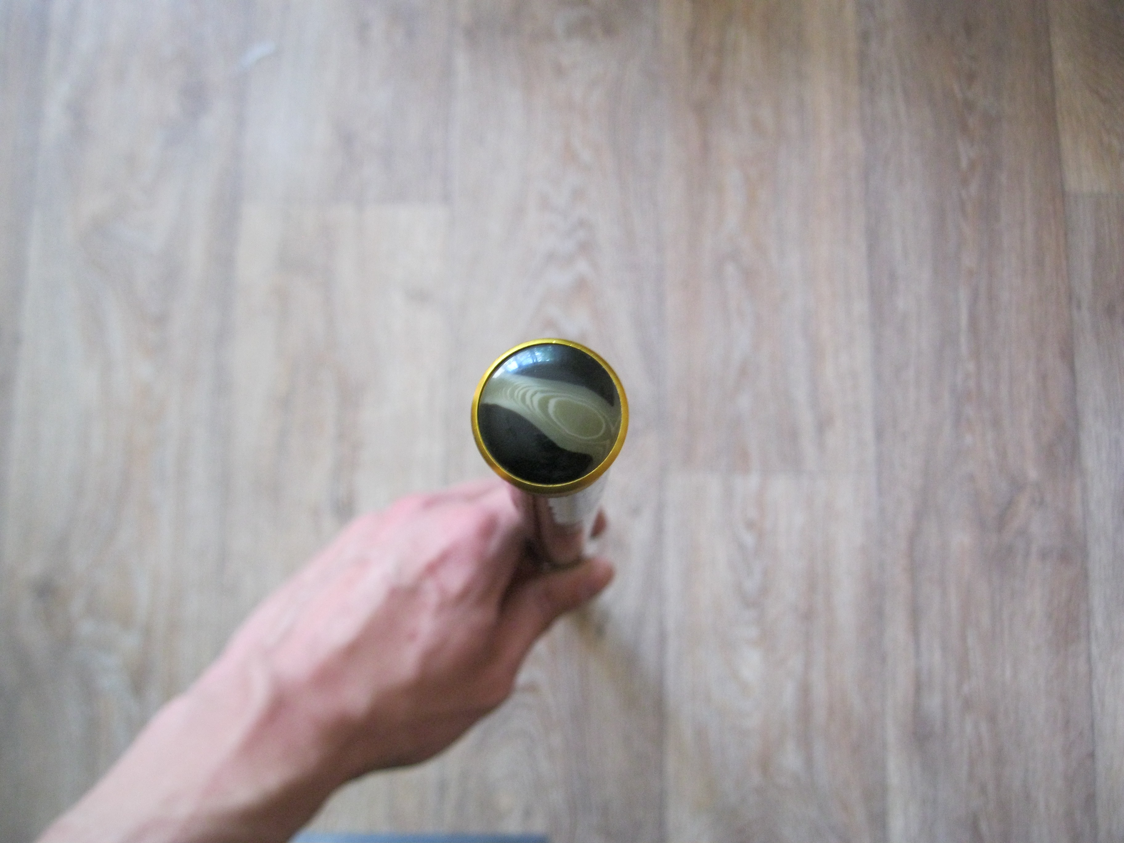 >>8620 12 колен. Реальная длина 6,90 см. В сложенном 75 см. Вес на чуханских весах составляет 282 гр. Хлыстик чуть меньше миллиметра (0,8 или 0,9). Бохатая металлическая заглушка прилагается. Ручка оплетена капроновой нитью, сверху тоже металлическое кольцо.