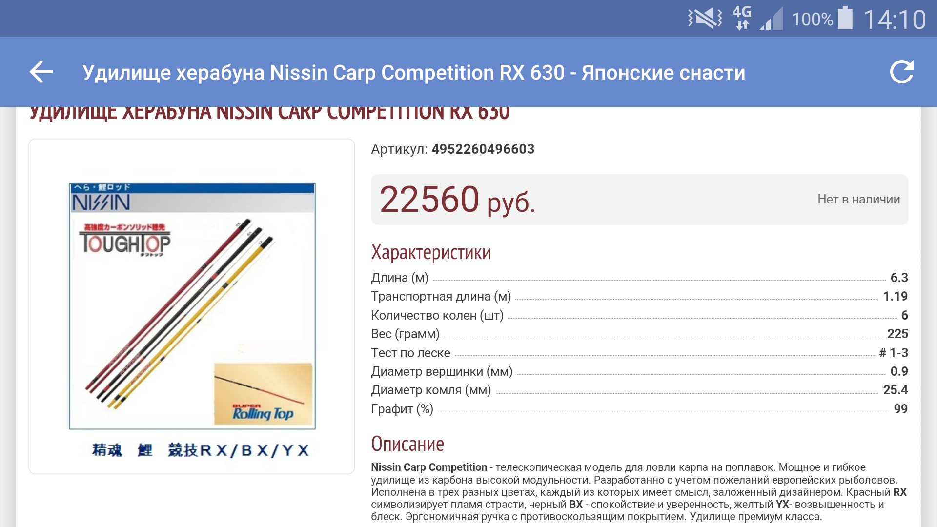 >>9676 Не в этом дело. Если б это было что-то высокотехнологичное, невесомое, не ломающееся ни при каких обстоятельствах, выбрасывающее рыбу из воды невидимым силовым лучом, тогда цена была бы оправдана. Но это обычная ломкая палка, уступающая по характеристикам палке с рынка за косарь. Достаточно сам текст почитать (ПЛАМЯ СТРАСТИ, СПОКОЙСТВИЕ И УВЕРЕННОСТЬ, ВОЗВЫШЕННОСТЬ И БЛЕСК), чтоб понять, что это типичная маркетологическая разводка колхозного быдла. Ты ещё пылесос Кирби за 200 косарей купи.