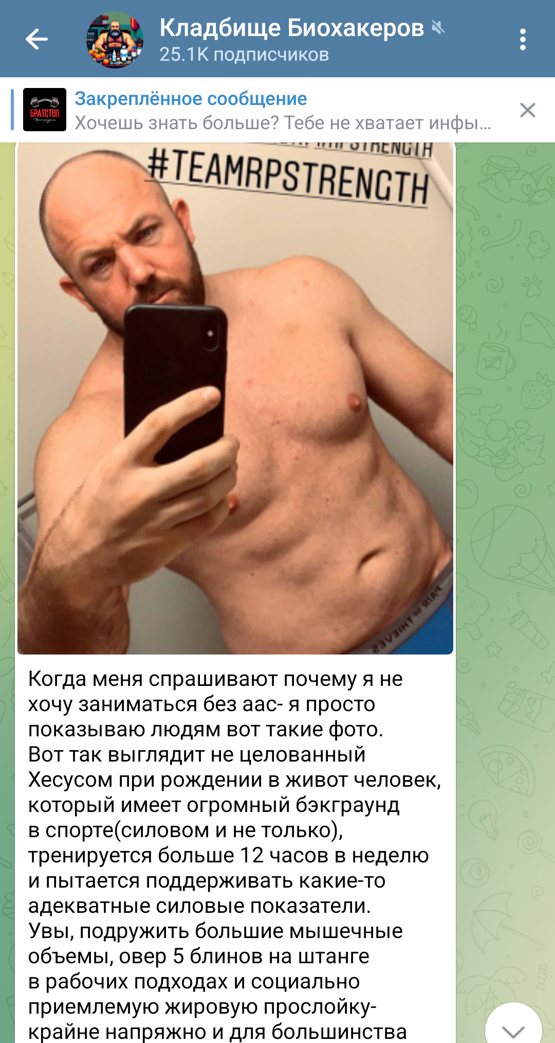 >>2530545 Кстати, этот чел вообще не сторонник тестостерона, и сам живет на 6 нмоль, это не мешает ему прекрасно себя чувствовать и тренироваться