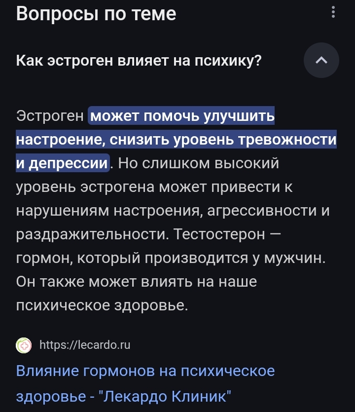 >>2593148 Если долго принимать тестостерон, то он может подавить естественную выработку сперматозоидов, потому что снизится уровень лютеинизирующего гормона. Но это не так страшно, потому что на фертильность не влияет. Зато тестостерон может улучшить либидо и эректильную функцию у тех, у кого раньше был дефицит. Но если долго принимать тестостерон, то он может нарушить гормональный баланс. Например, повысить уровень эстрогена из-за ароматизации. Из-за этого может появиться гинекомастия или сексуальная дисфункция. Даже если принимать тестостерон в стандартной дозировке — 1 мл в неделю, — то может повыситься количество эритроцитов, и тогда кровь будет гуще. Из-за этого может повыситься риск тромбоза. Поэтому нужно следить за гематокритом. Ещё от тестостерона может атрофироваться яичко. Но это не влияет на сексуальную активность, если гормоны в норме. Если соблюдать дозировку и консультироваться с врачом, то риски будут меньше.