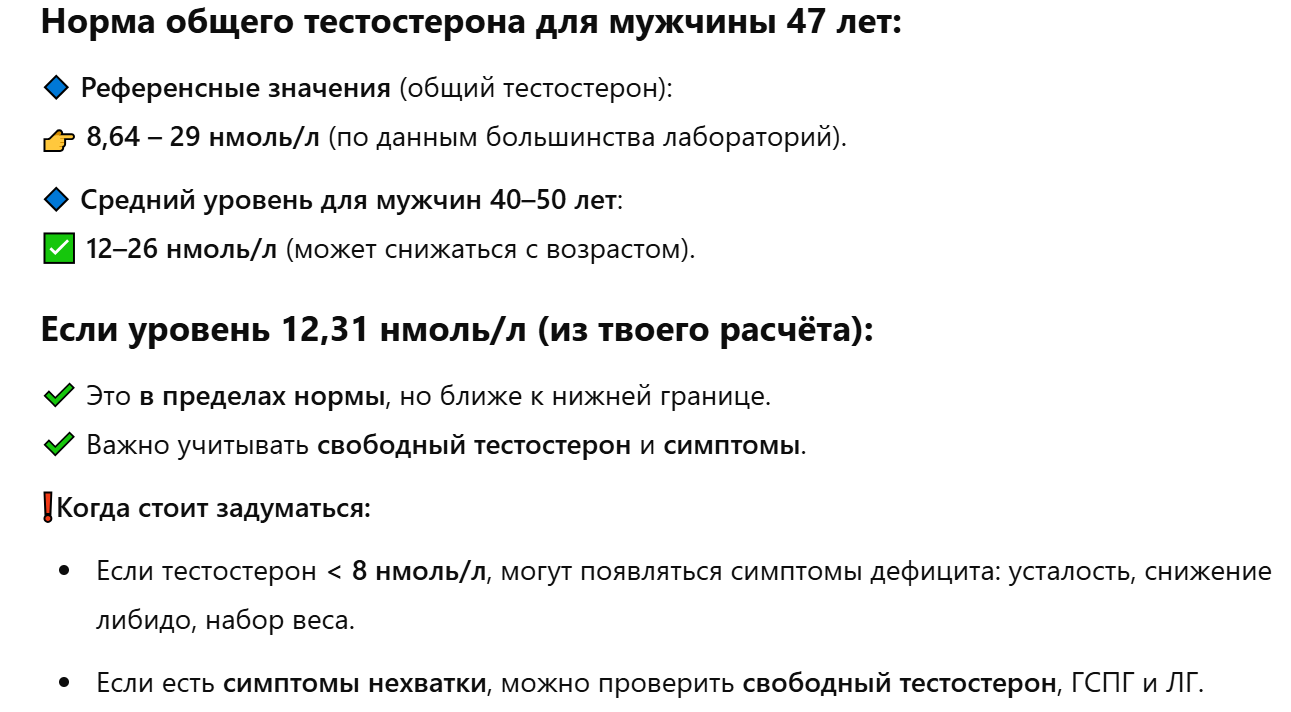 По логике Zhivov Fitness не стоит расчитывать на какой-то нормальный рост мышц, если у тебя те же 12 нмоль/л.