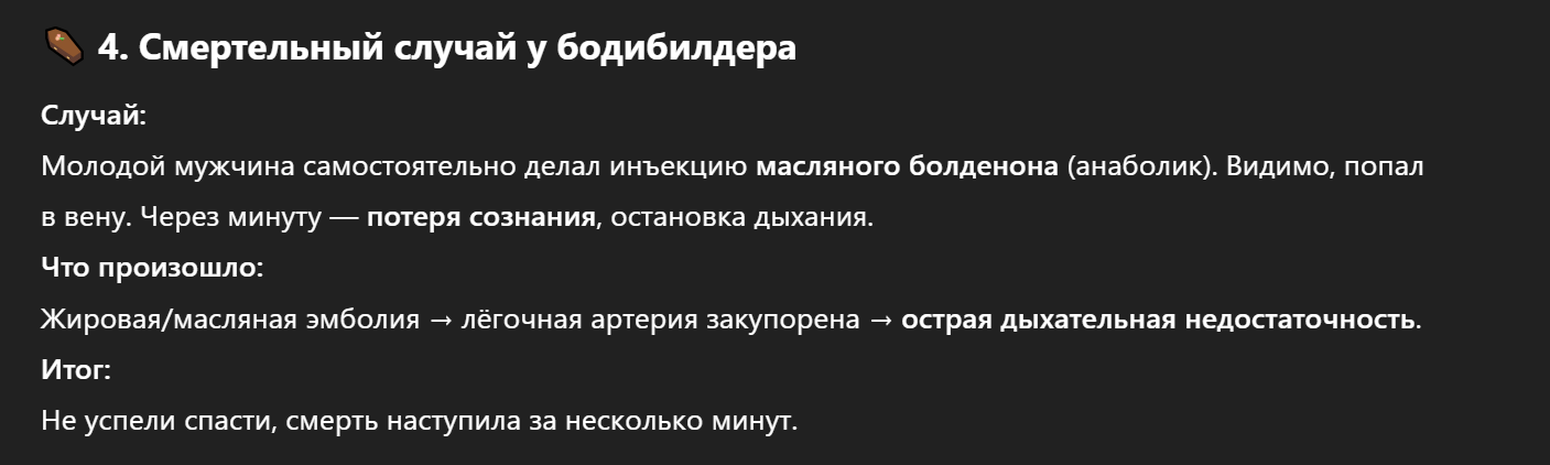>>2589070 Это еще смотря какой сосуд, капилляры как бы тоже сосуды, но проблем с ними не возникает, хотя масло и попадает в них при каждой инъекции. Тот даун скорее всего колол в бедро и загнал себе весь раствор прям в вену. Делай объемные уколы в жопу, там единственная опасность попасть в нерв, но в крупный сосуд ты при всем желании не уколешь. Малые объемы можно колоть в дельты, там тоже риск минимальный.
