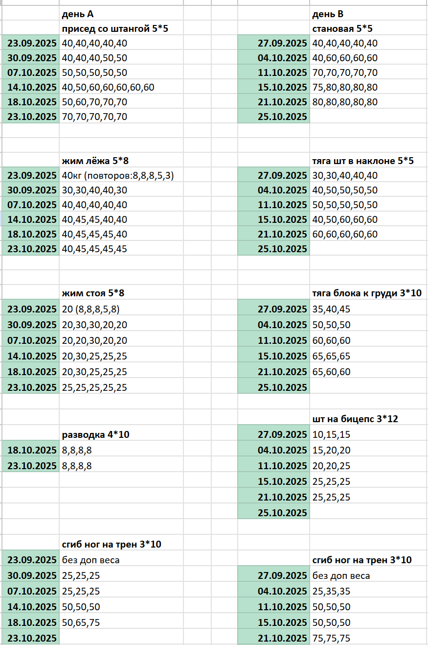 В зал пришёл впервые за долгое время. Думаю вот, какими темпами выстраивать циклы и на какую прибавку ориентироваться. Интересуют только присед и тяга. Буду растить жопу и ноги.