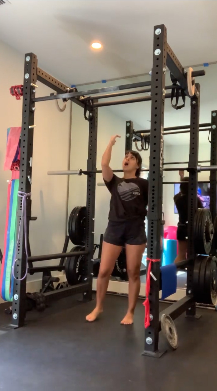 на этот раз хватом поуже и к себе, потому что так легче надо менять хват но хват действительно полезно менять амплитуда, как видите, полная, но тело гуляет, да