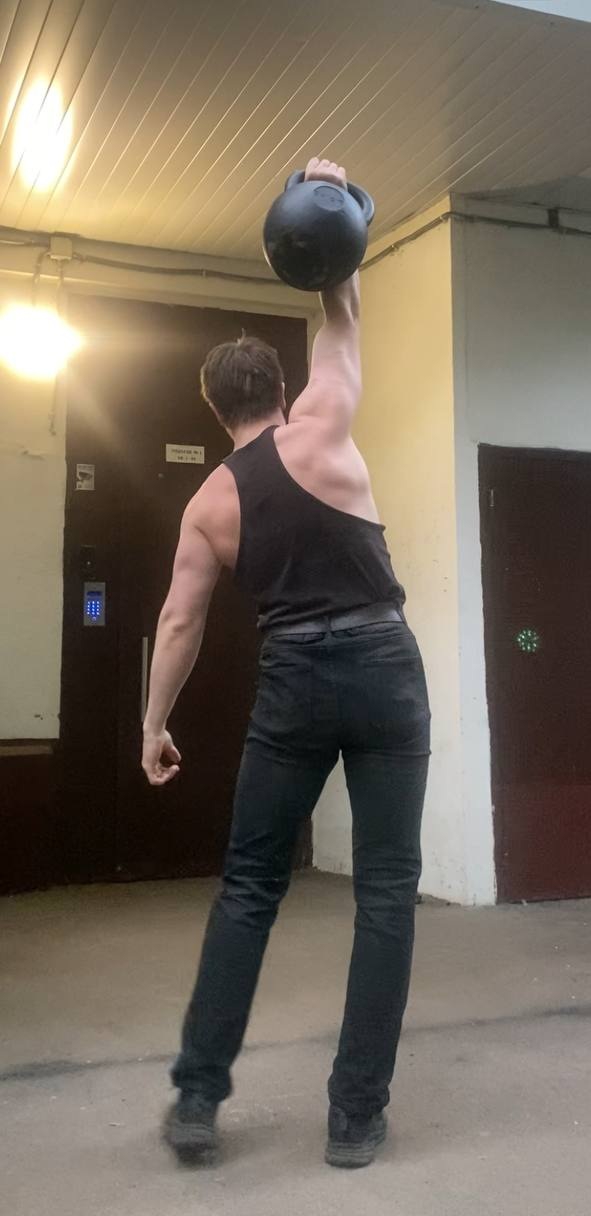 Насчет махов на уровень глаз - делал выше и как-то на обратном ходу трудно контролировать инерцию, получается скорее падение. Буду делать в щадящем режиме, и разумеется, по видосам. Про разминку тоже помню, еще в течение дня стараюсь держать себя в тонусе отжиманиями - как говорил в начале, я больше года ничего тяжелее хуя не поднимал и сильно скурвился. Месяц восстанавливался отжиманиями, пока не адаптировался к нагрузке, сейчас взялся за гирю потихоньку.